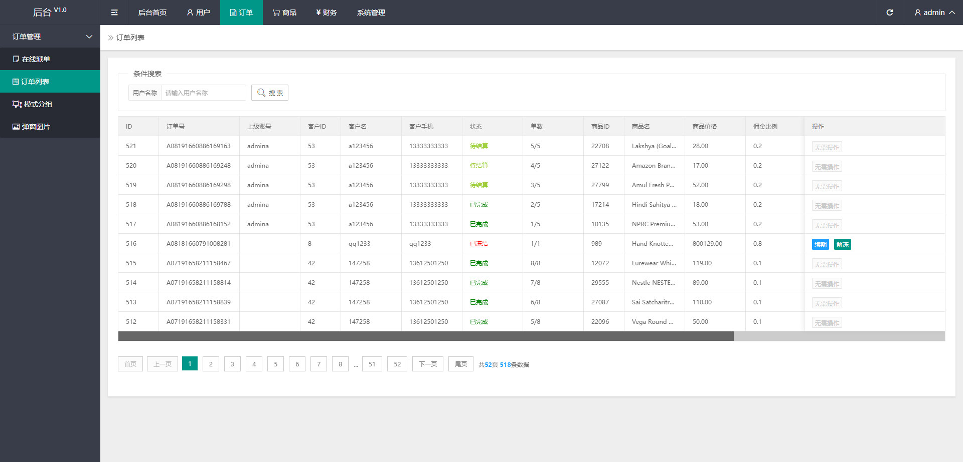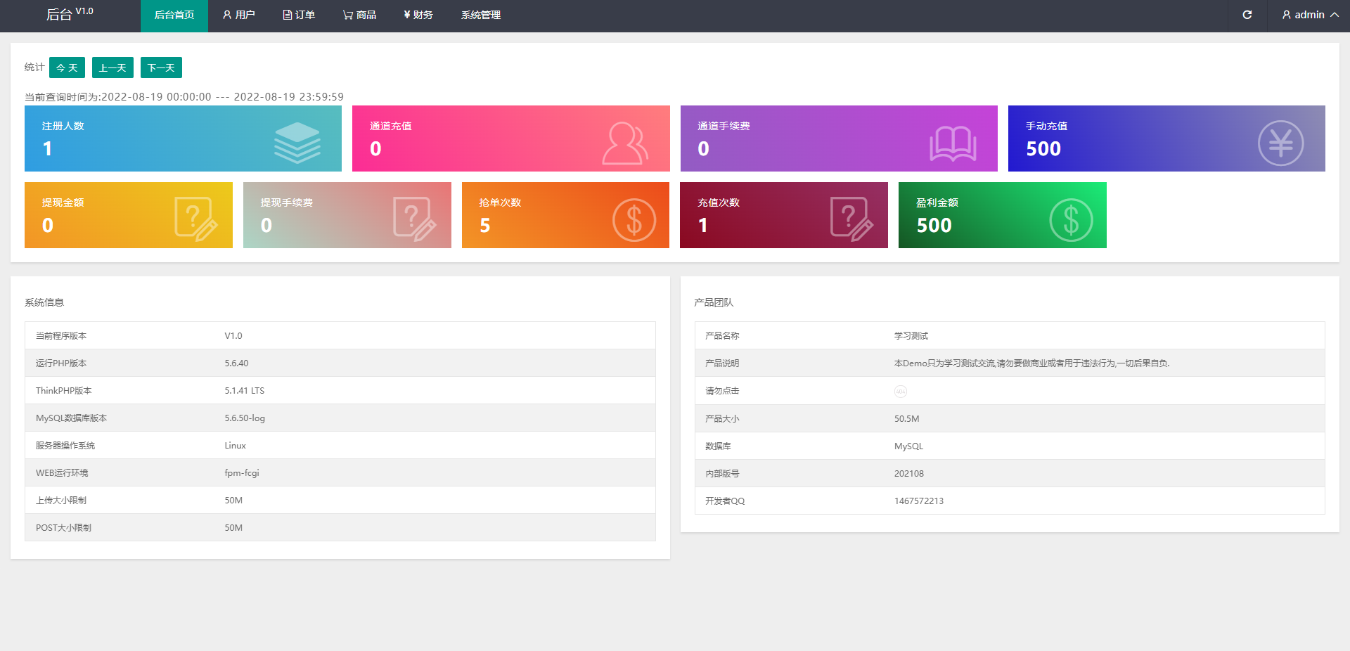 此套是别人二开得系统,不知道有和区别 附带单独代理后台,具体看图