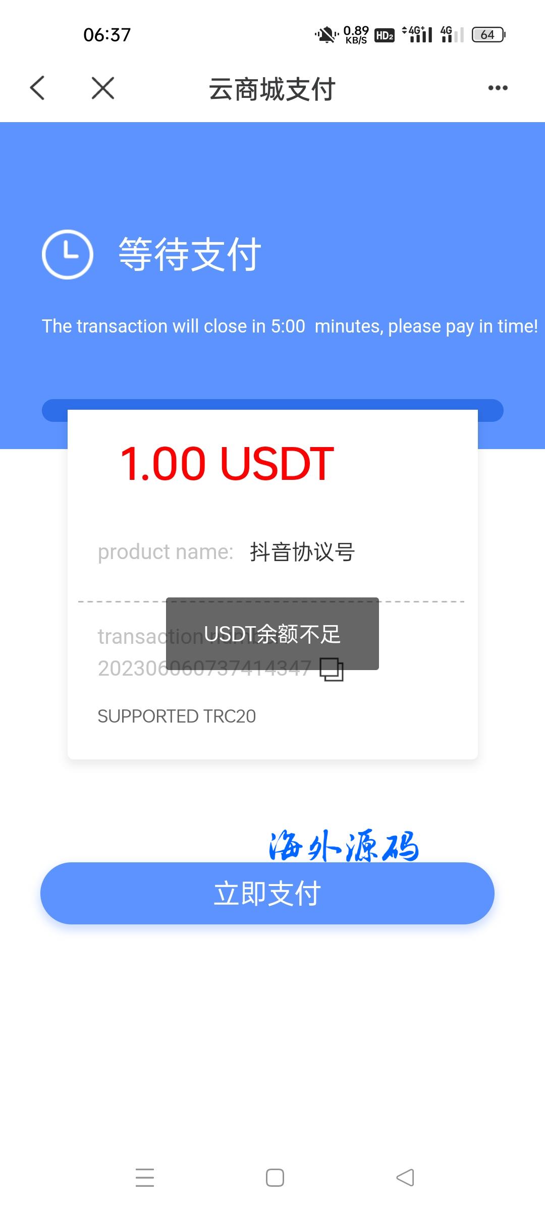 新增前端弹窗公告,支付提示usdt余额不足,支付提示首次支付trx不足100