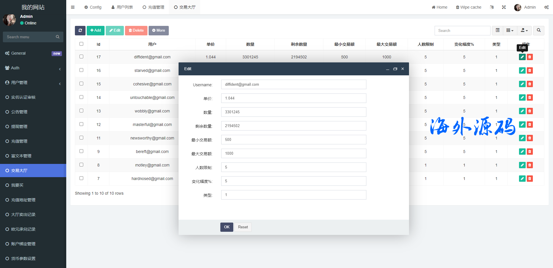 首页的虚拟币数据是对接一个私人的bbank交易所的,需要自行更改