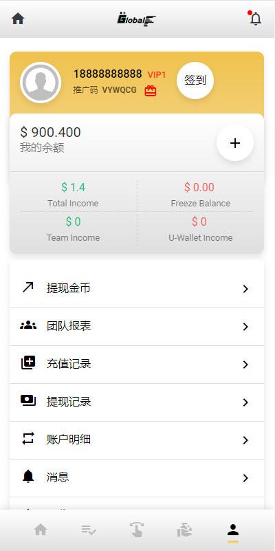 源码是别人全新定制的抢单ui,提现限制、今日卡单、充值百分比等功能
