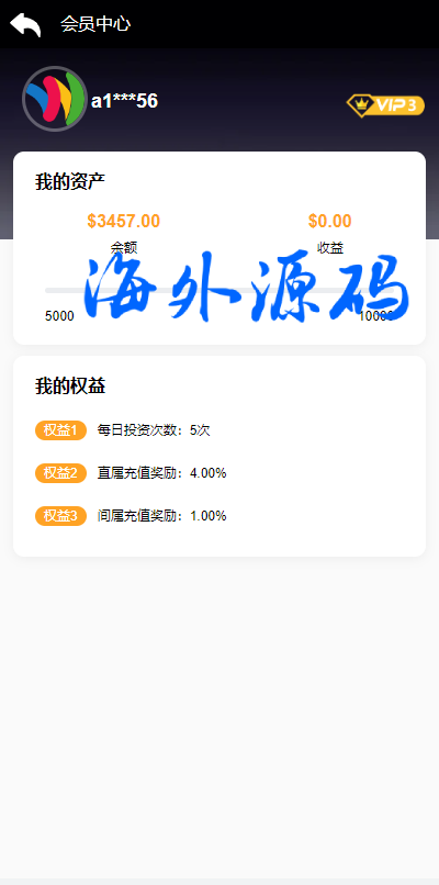 VIP等级划分,可根据不同等级,设置不同的百分比奖励
