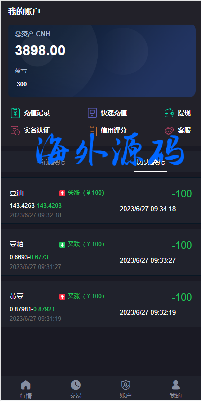 前端功能简洁,K线UI优美,用户信用分后台可更改