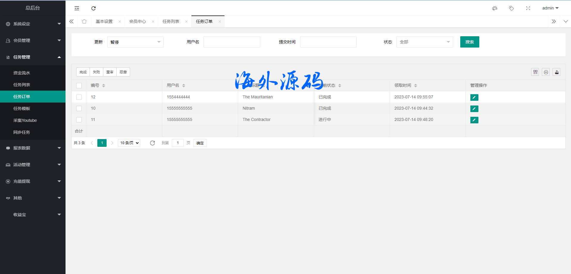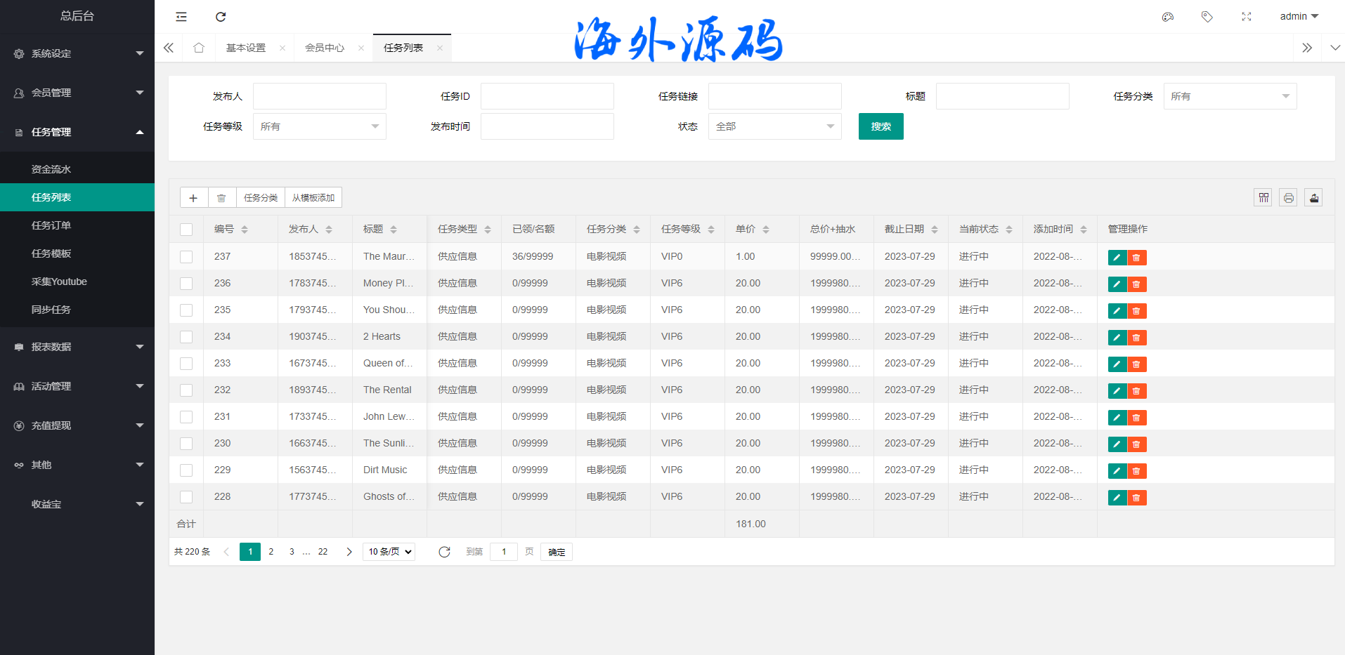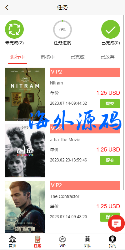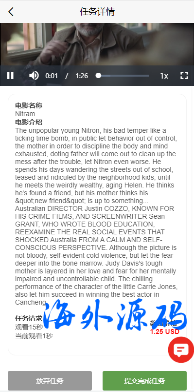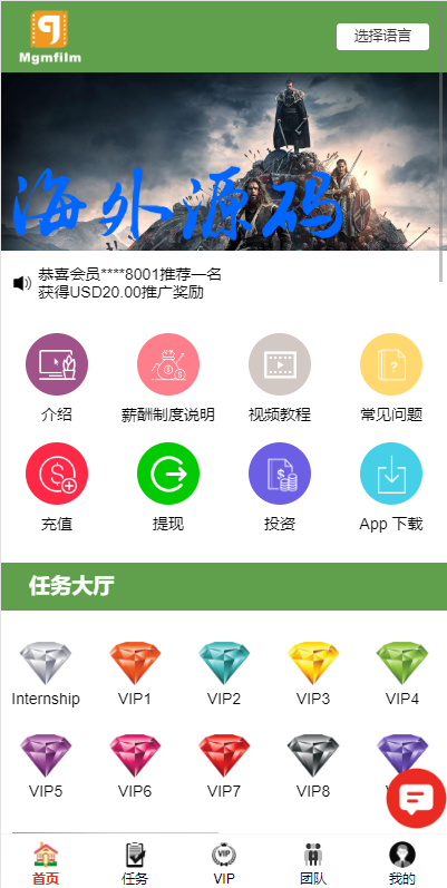海外电影任务系统/看视频返利/电影视频投资刷单源码