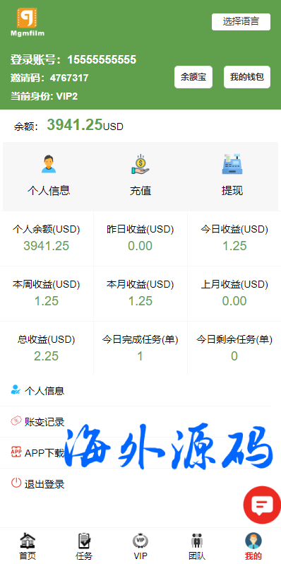 多语言海外点赞任务系统/余额宝/国际任务点赞源码