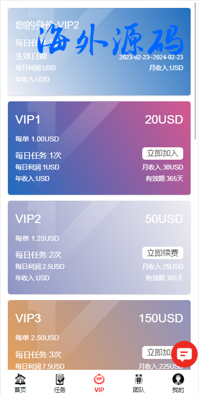VIP任务理财系统/增流投资理财/任务系统/前端uniapp