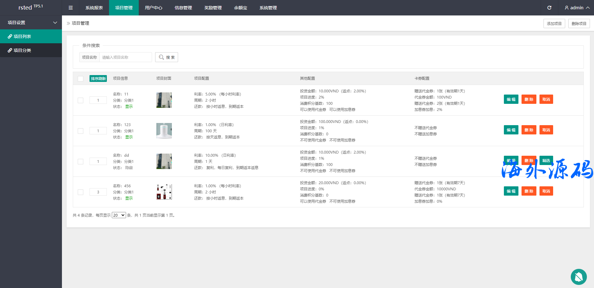 系统功能完善,前端多语言,系统产品后台可修改不限项目类型