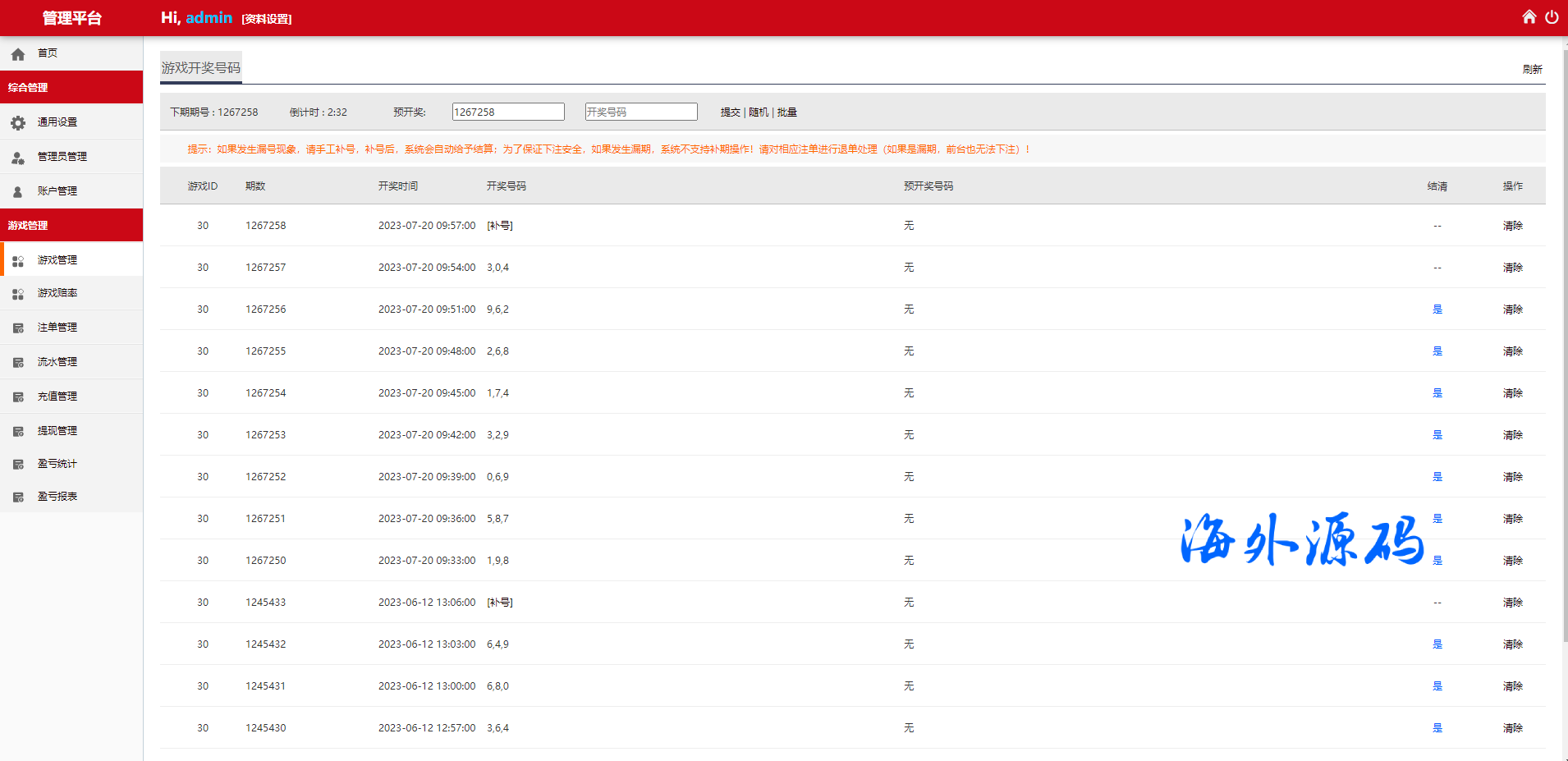 前端多个玩法,采集开奖正常,带开奖预设等功能