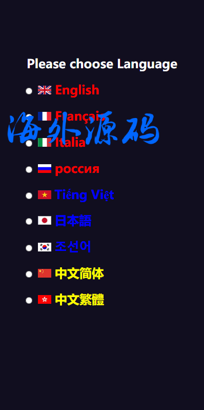 前端带多语言选项,语言包需要自己补齐