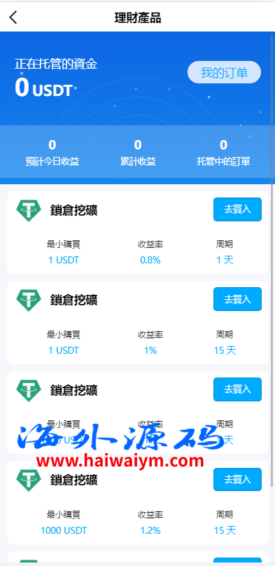 系统新增p2p理财功能、派单抢单功能,支持锁仓质押、三级分销、下单限制等功能