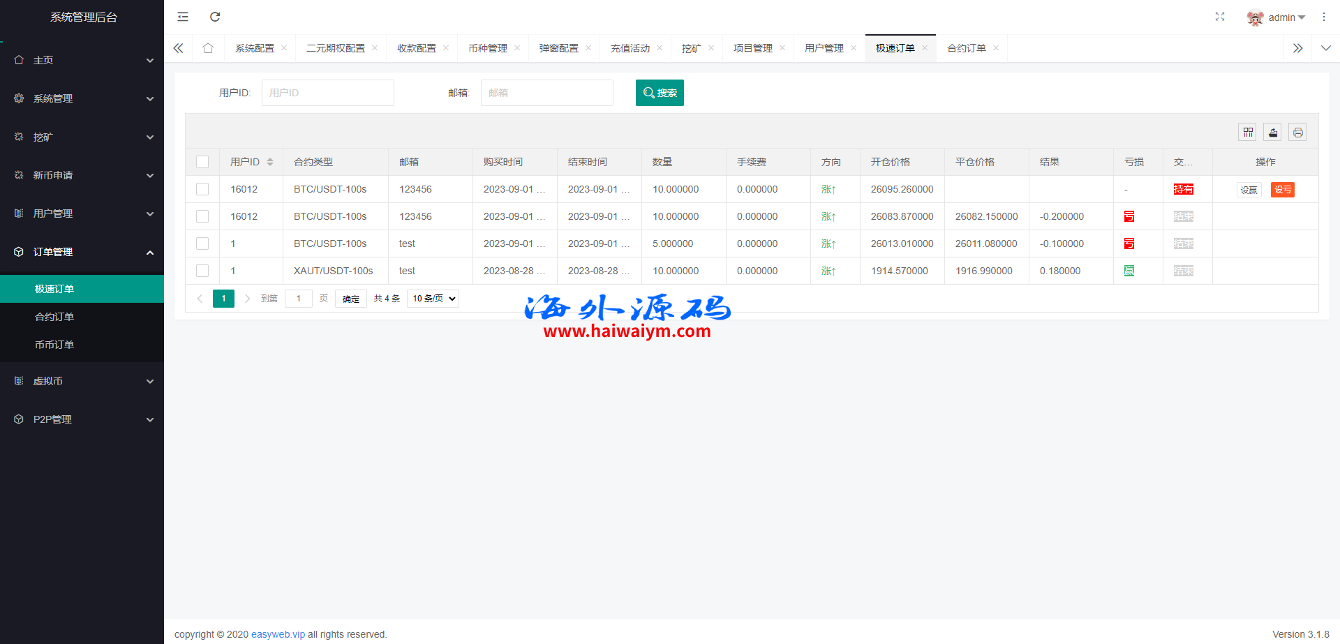 新版多语言交易所系统/秒合约币币交易/P2P理财派单抢单