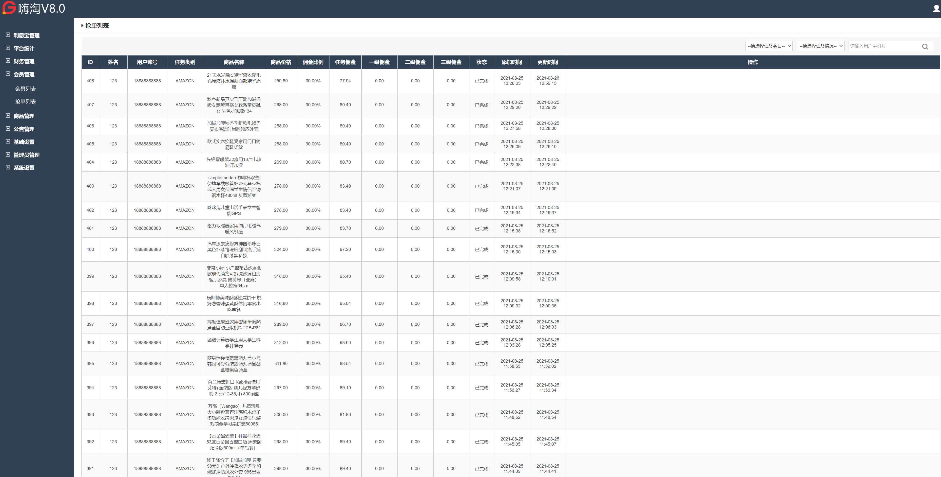uinapp抢单系统/嗨淘抢单源码/海外抢单刷单源码