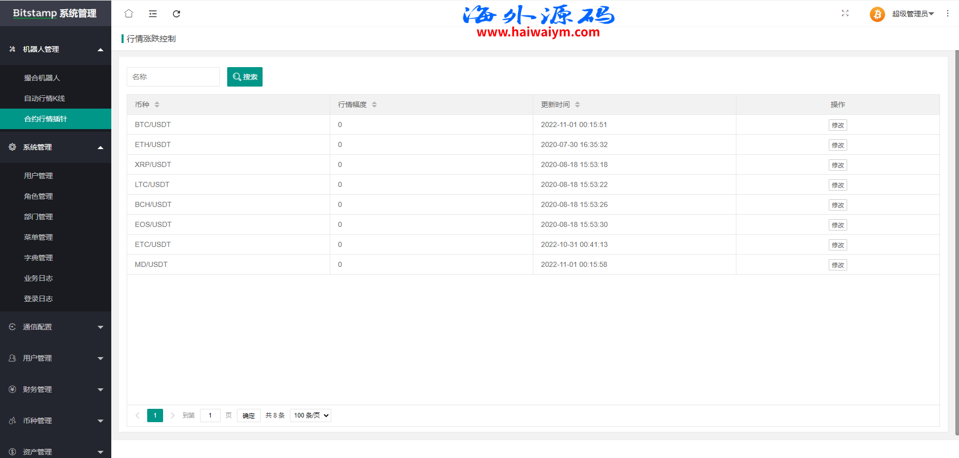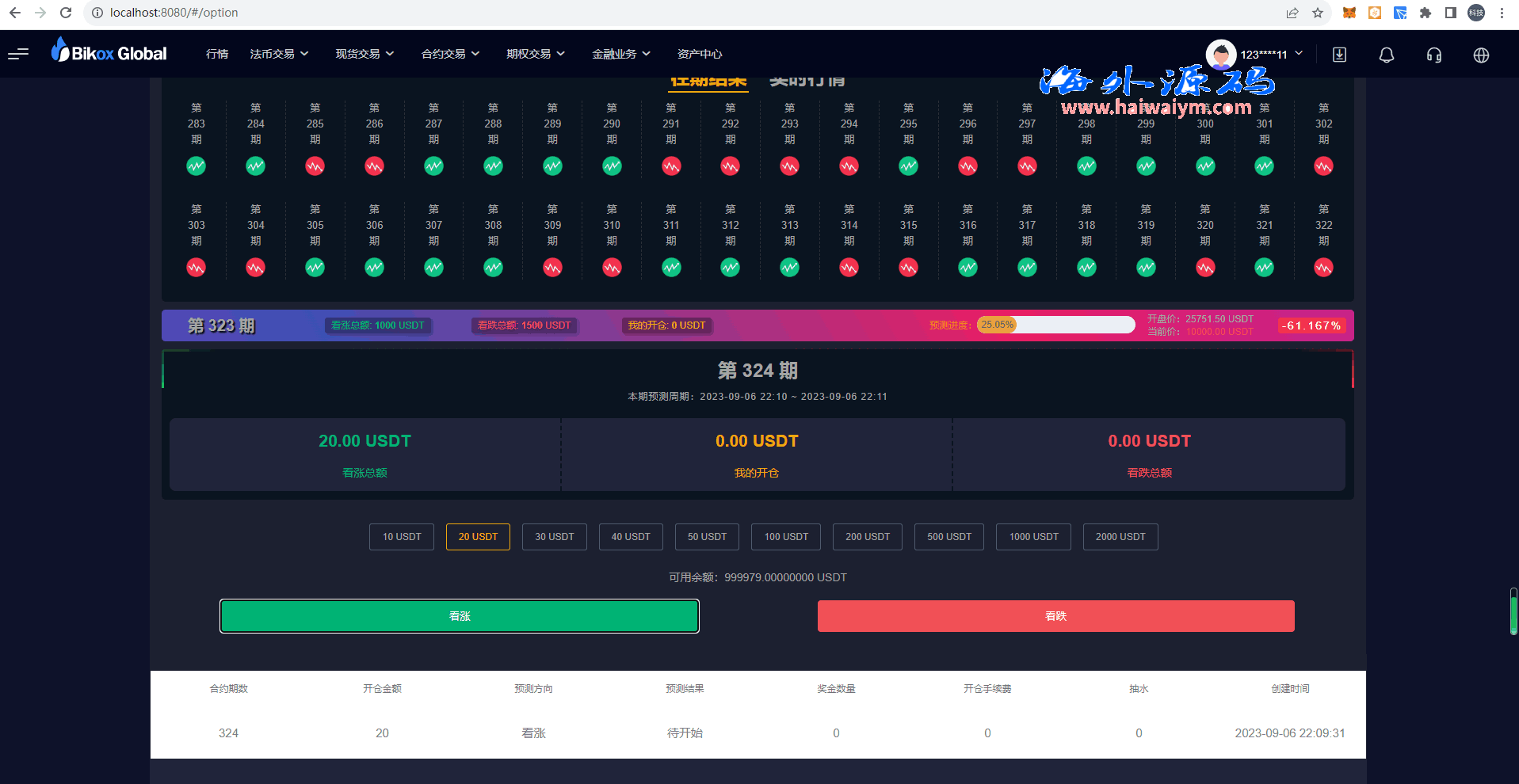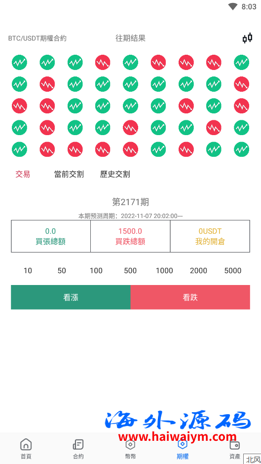 系统带期权、合约、法币交易、可发币控行情,不带理财挖矿
