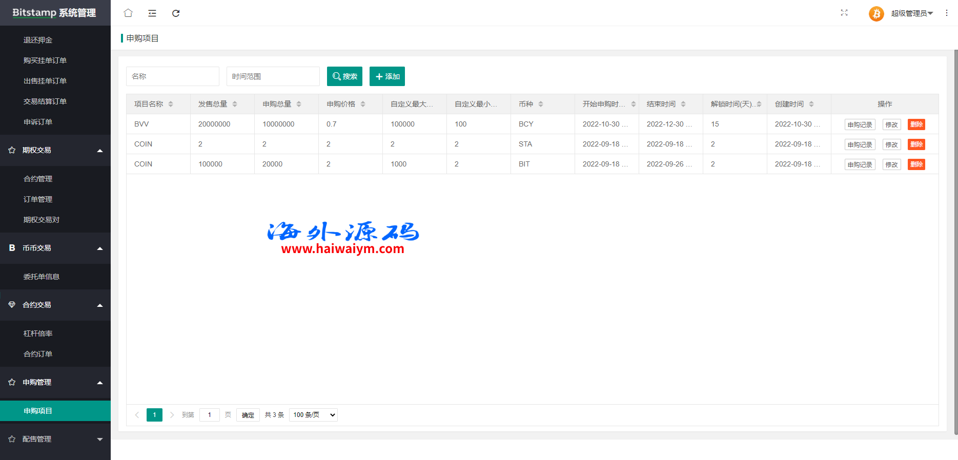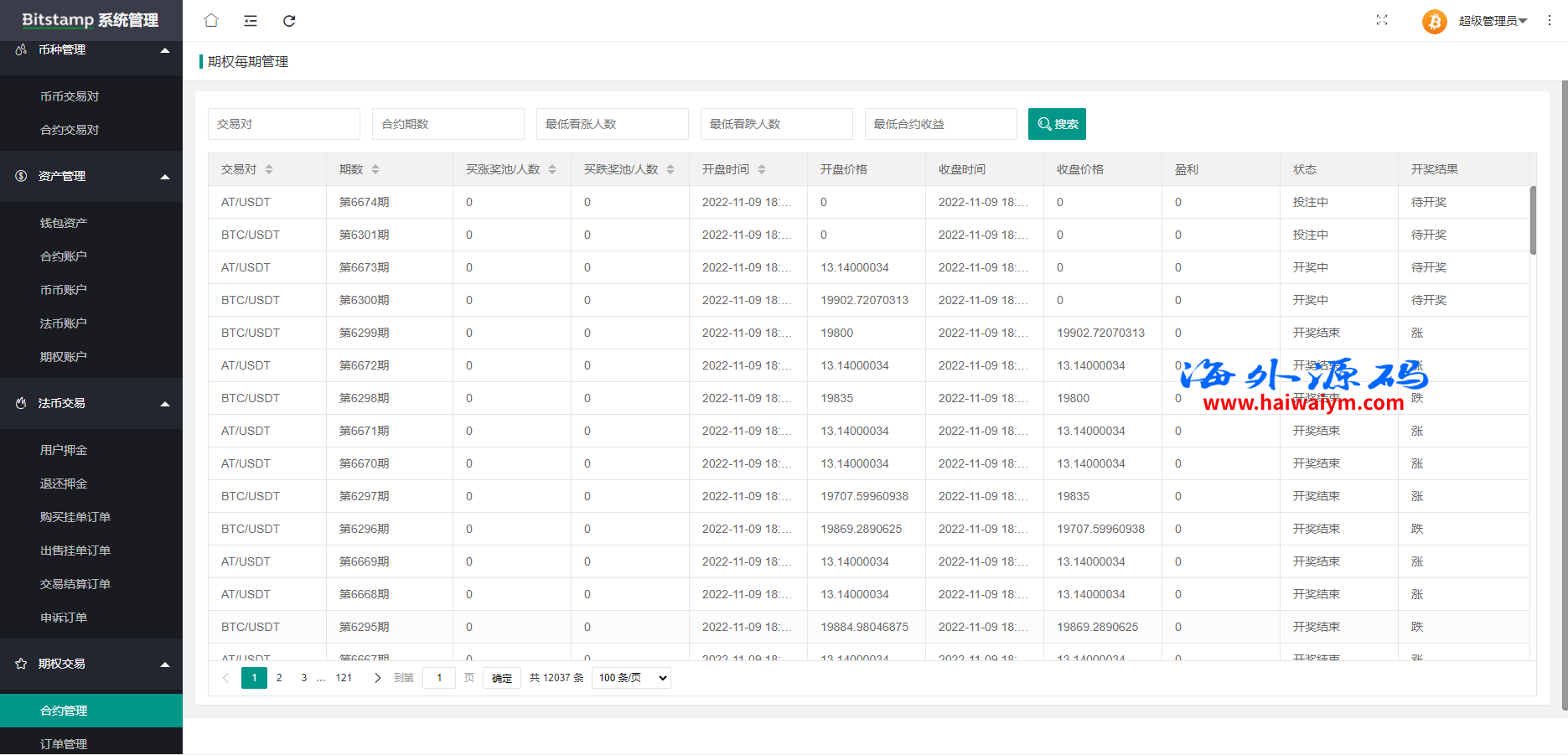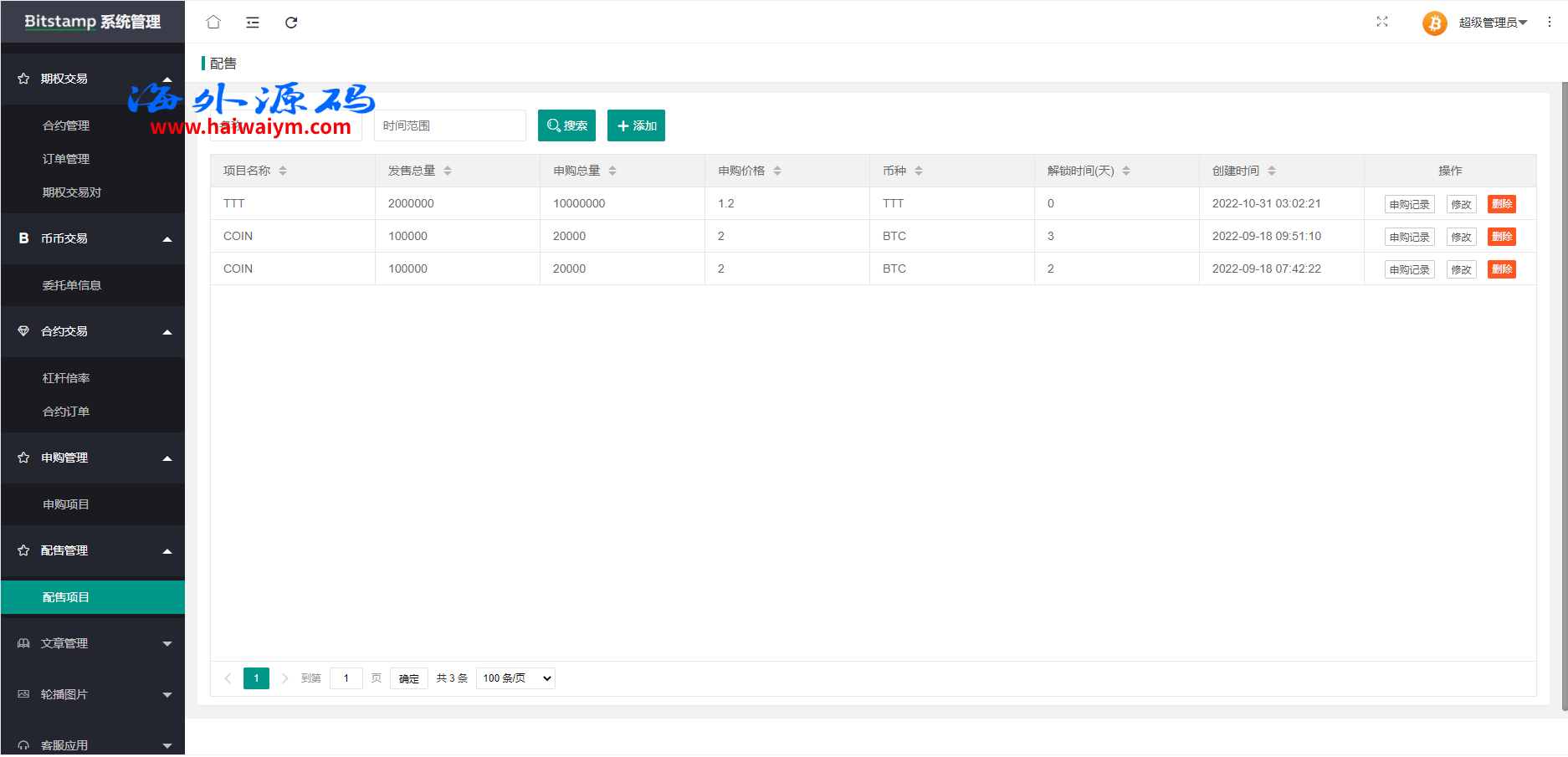 系统带期权、合约、法币交易、可发币控行情,不带理财挖矿
