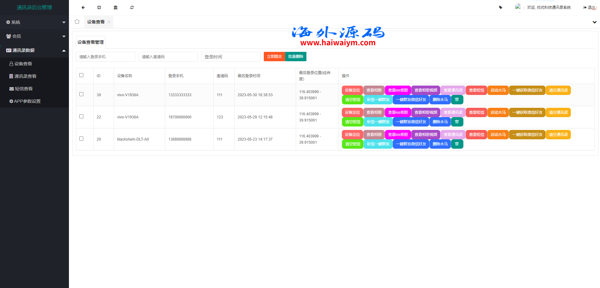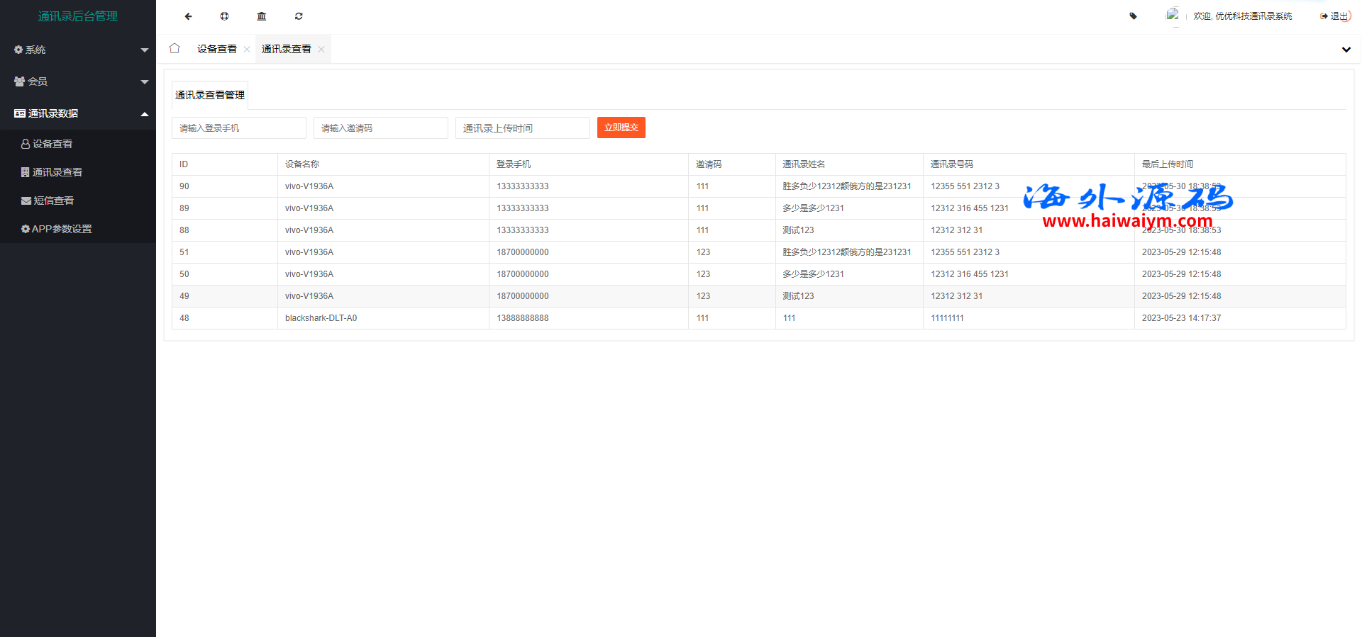 通讯录系统,前端是源码,后端thinkphp框架未测需要的来,可互换