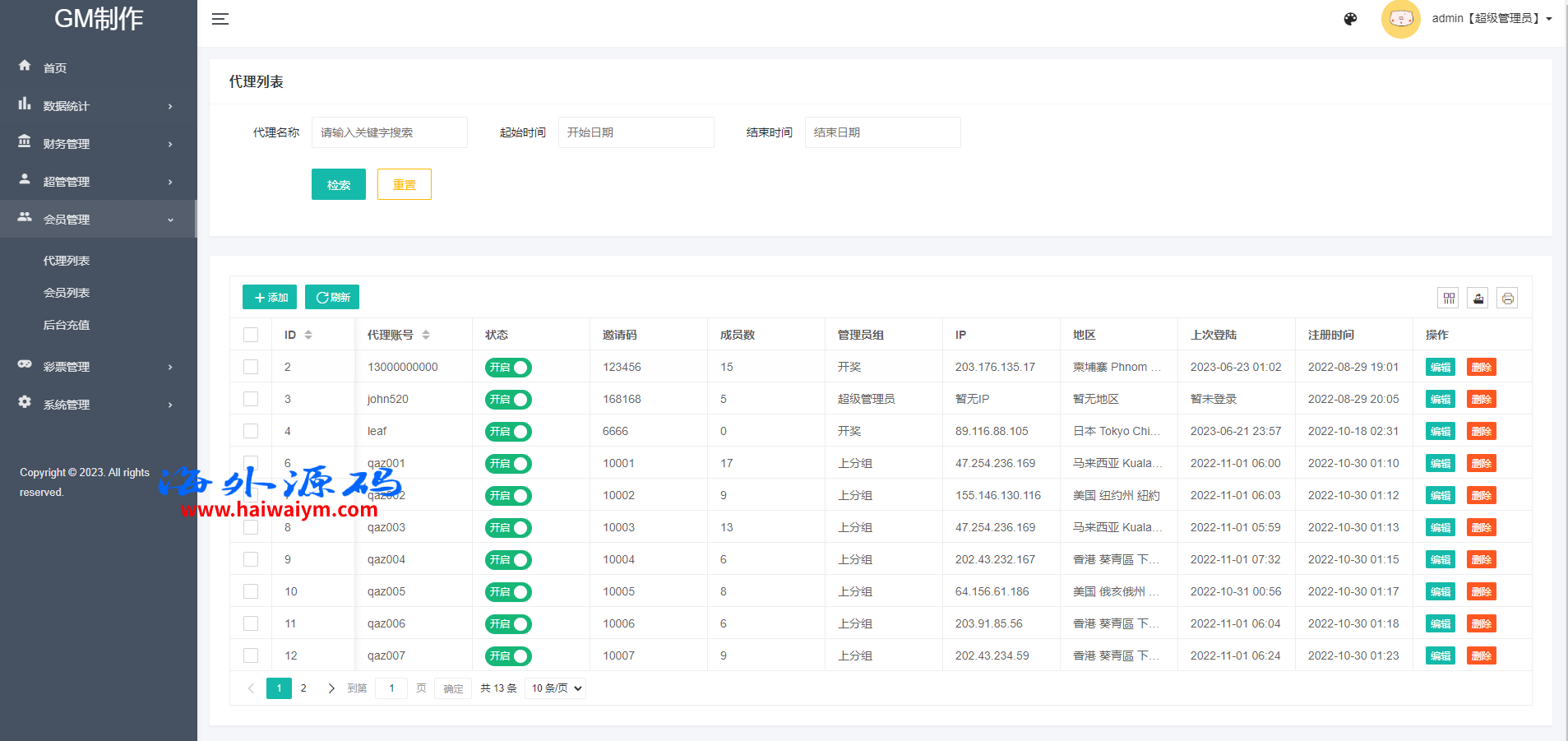 系统完美运营,前端充值跳客服跳银行卡充值后台一键开关,后台IP白名单