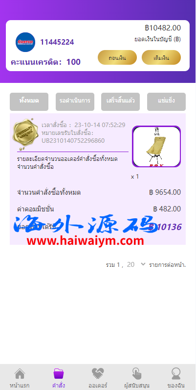 前端紫色泰语版抢单刷单系统,前端单泰语,支持二开其他语言