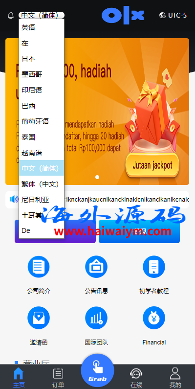 多语言海外抢单刷单系统,前端多语言默认隐藏自行开启