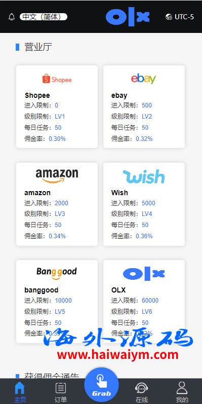 多语言抢单刷单系统/海外抢单刷单/派单/订单自动匹配