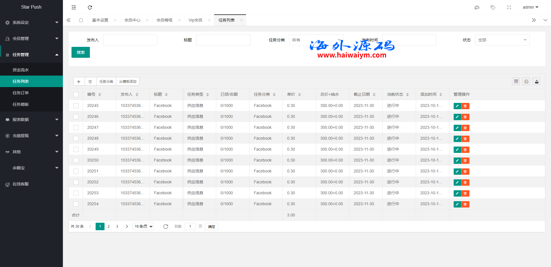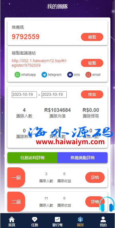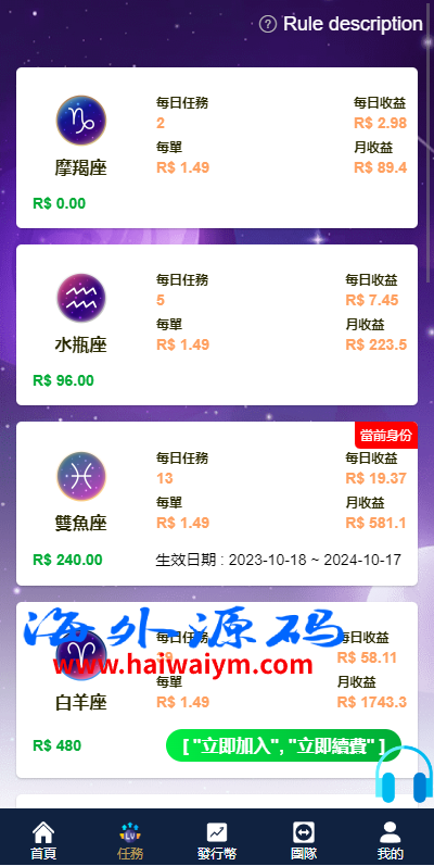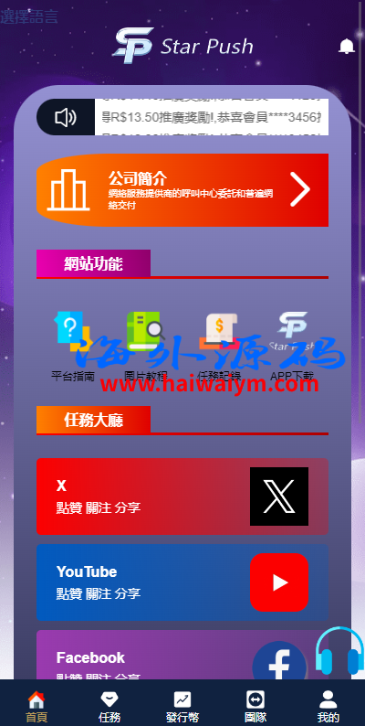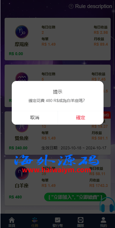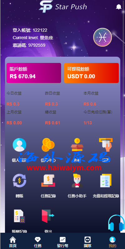 二开版海外任务系统/星座投资/TIKTOK脸书任务平台