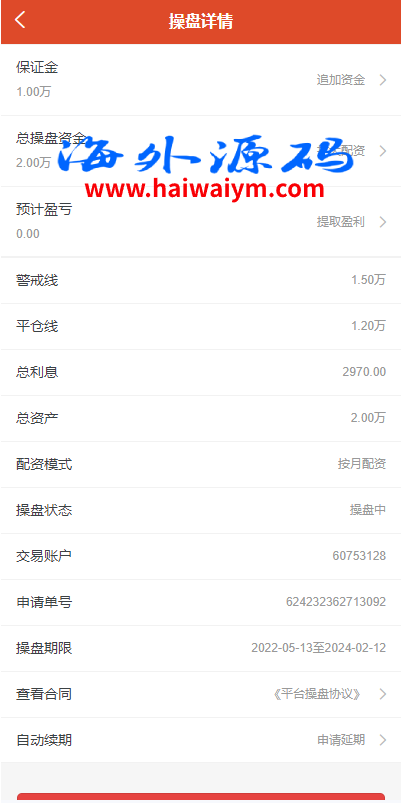 系统设有预警线自动平仓线,可按天配资,按周配资,按月配资,到期之后自动延期扣除手续费即可