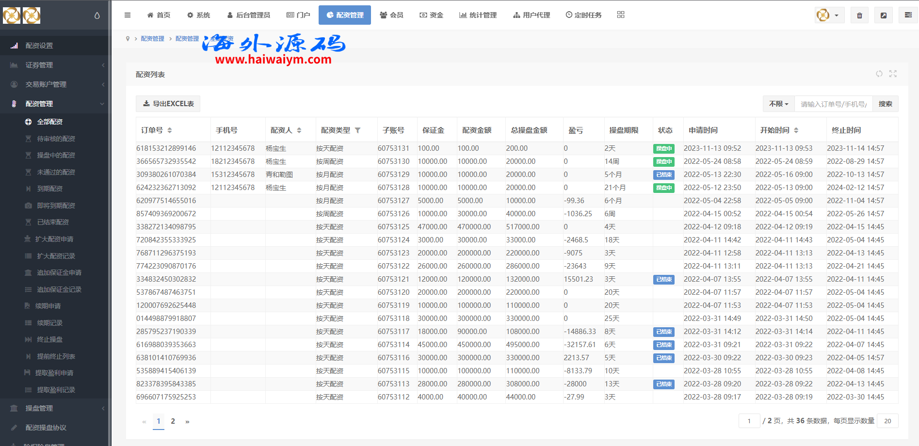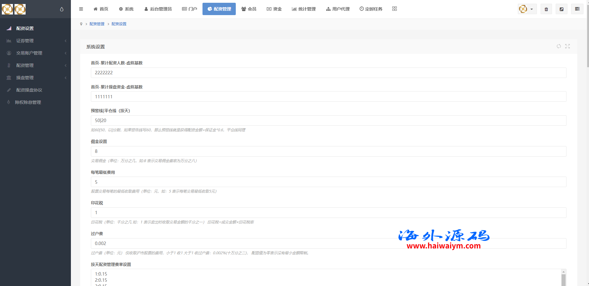 系统可直接1~10倍配资,后台可根据需求更改配资倍数