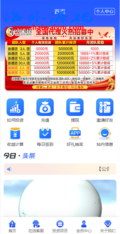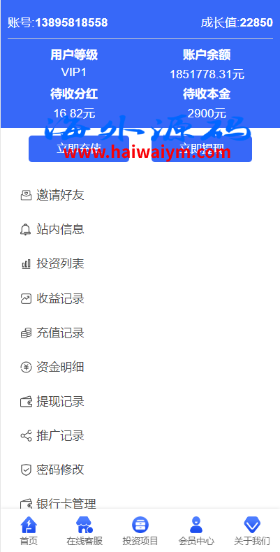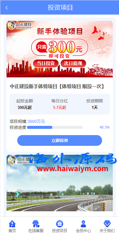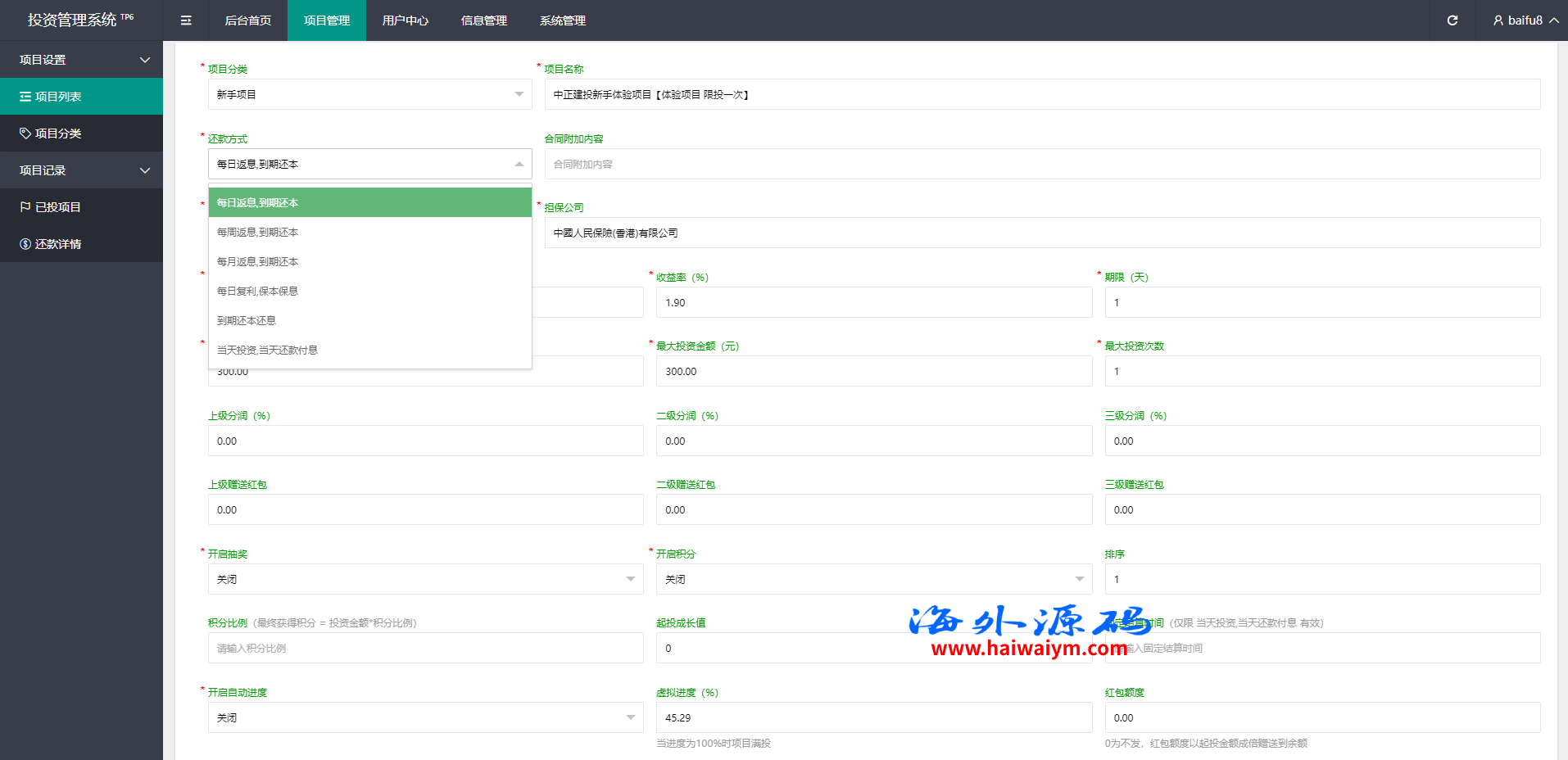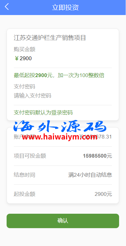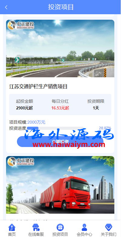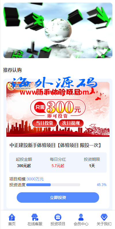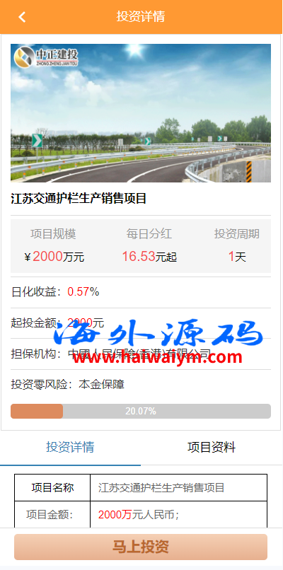 项目投资理财系统/投资众筹系统/分红返利