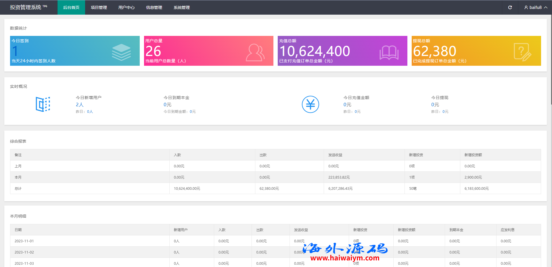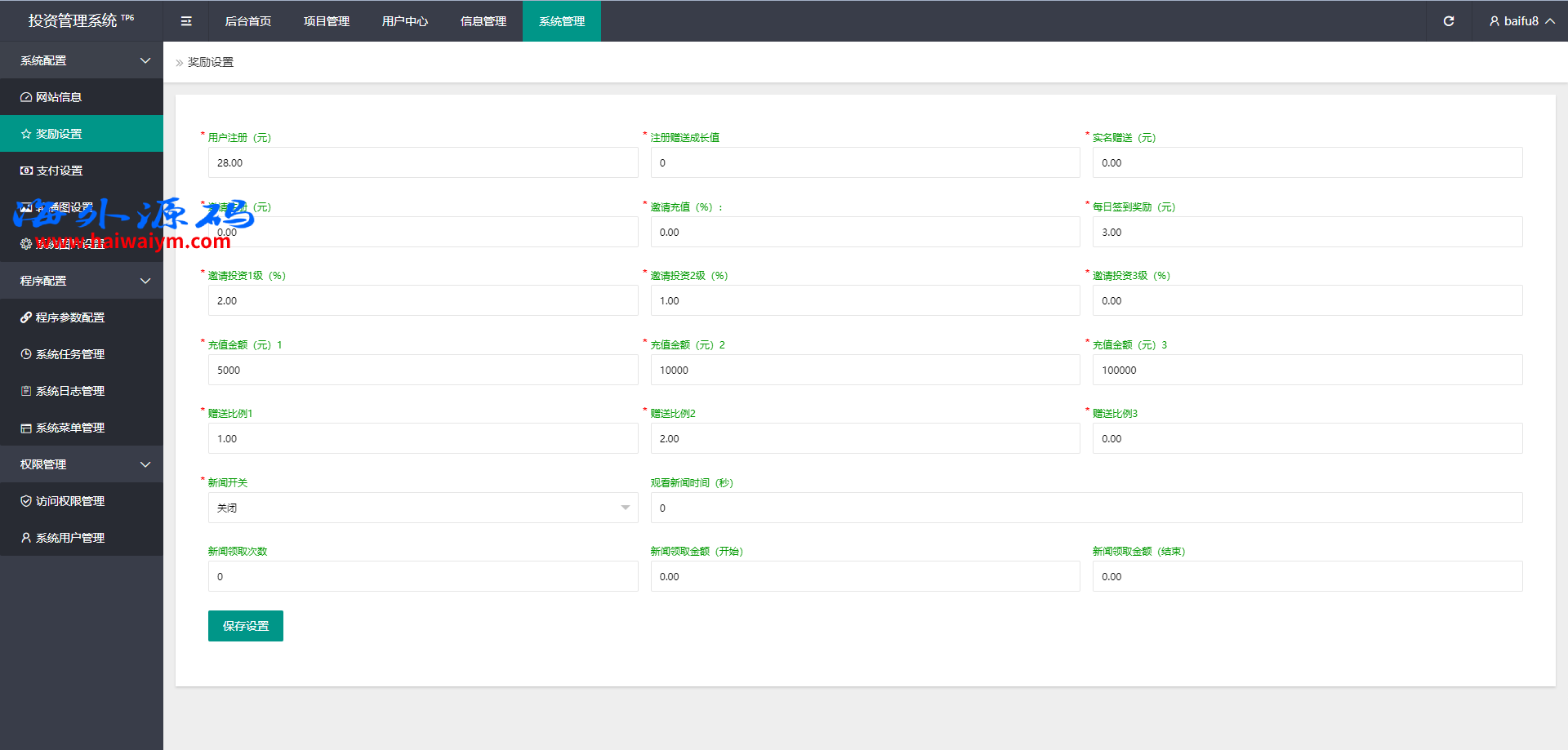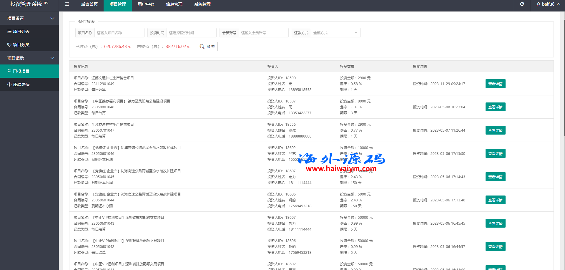 项目投资理财系统/投资众筹系统/分红返利