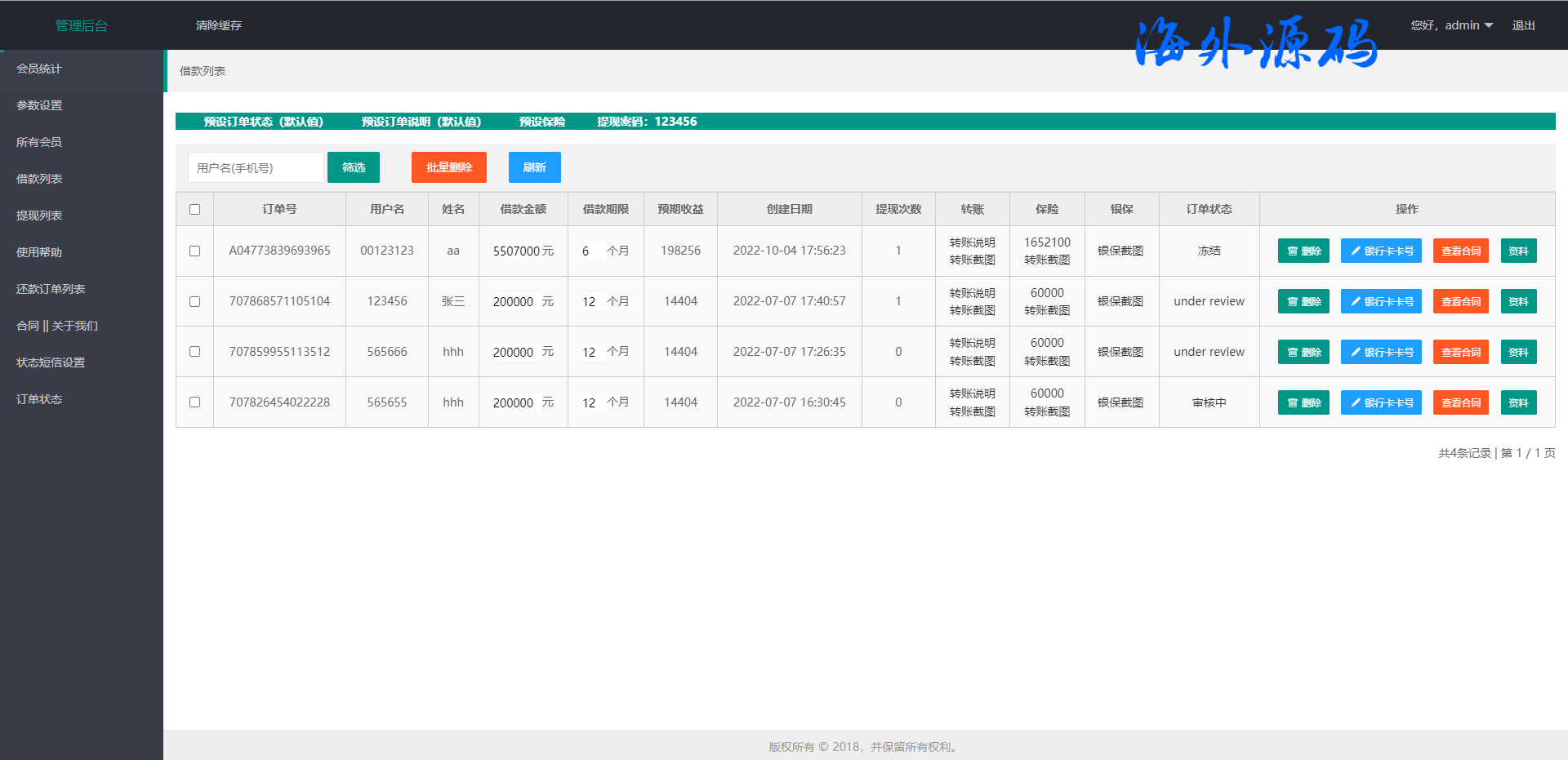 原框架是比较经典的一款贷款系统,功能很全面