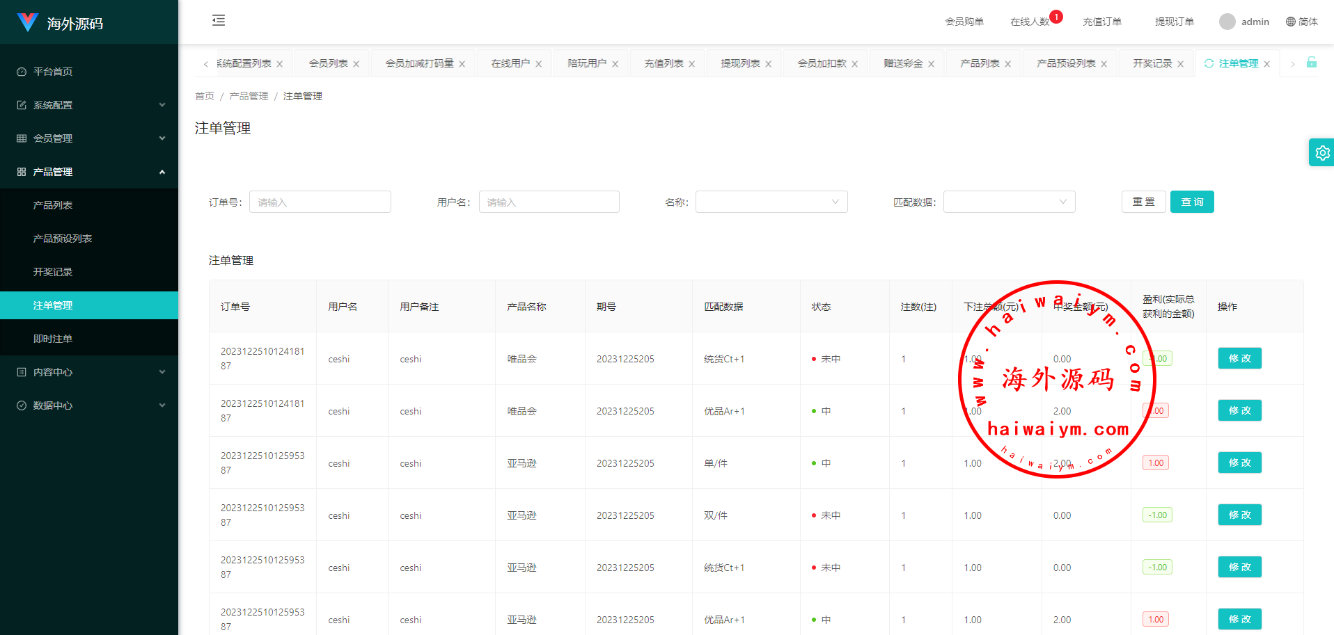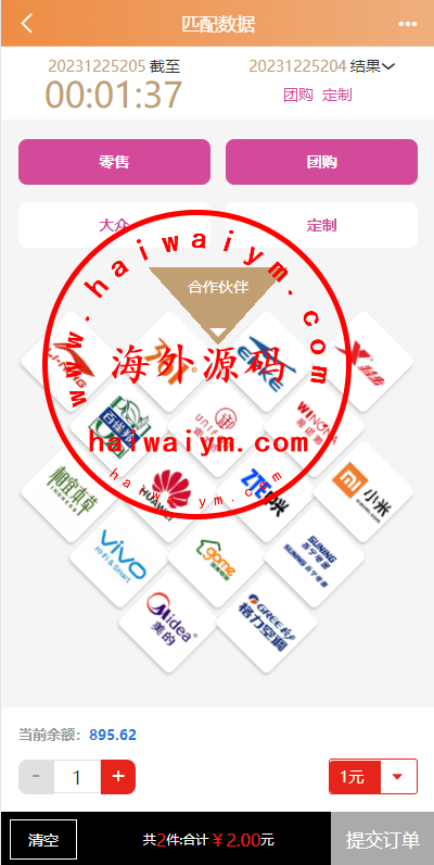 uniapp伪商城系统/CP快三游戏/订单自动匹配/带预设/代理后台