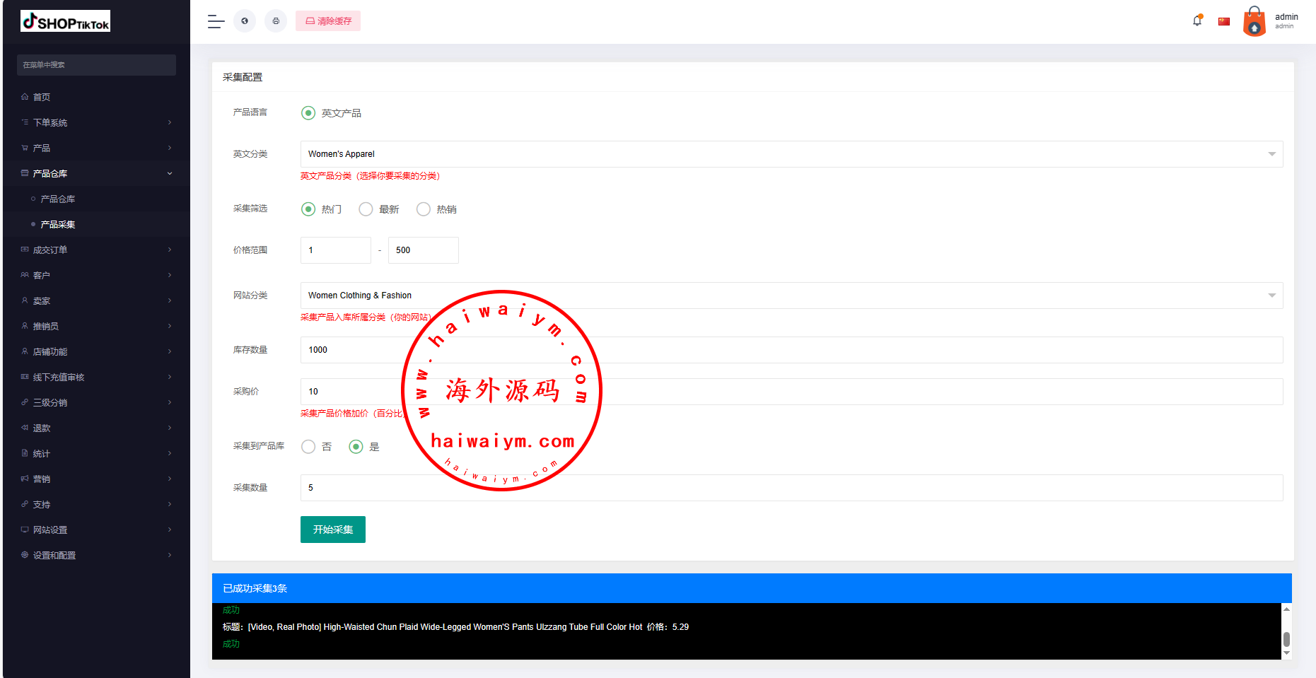 1.产品采集商库,商家可一键铺货