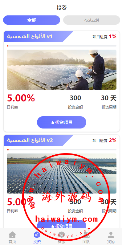 运营版阿拉伯投资理财系统/海外投资众筹系统/前端vue