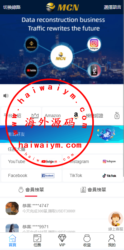 多语言海外点赞任务系统/余额宝/国际任务点赞源码