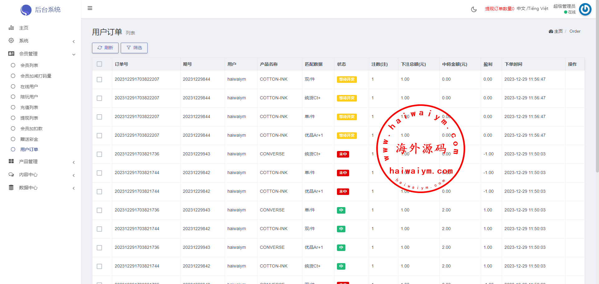 多语言海外伪商城刷单系统/CP快三/带预设/订单自动匹配