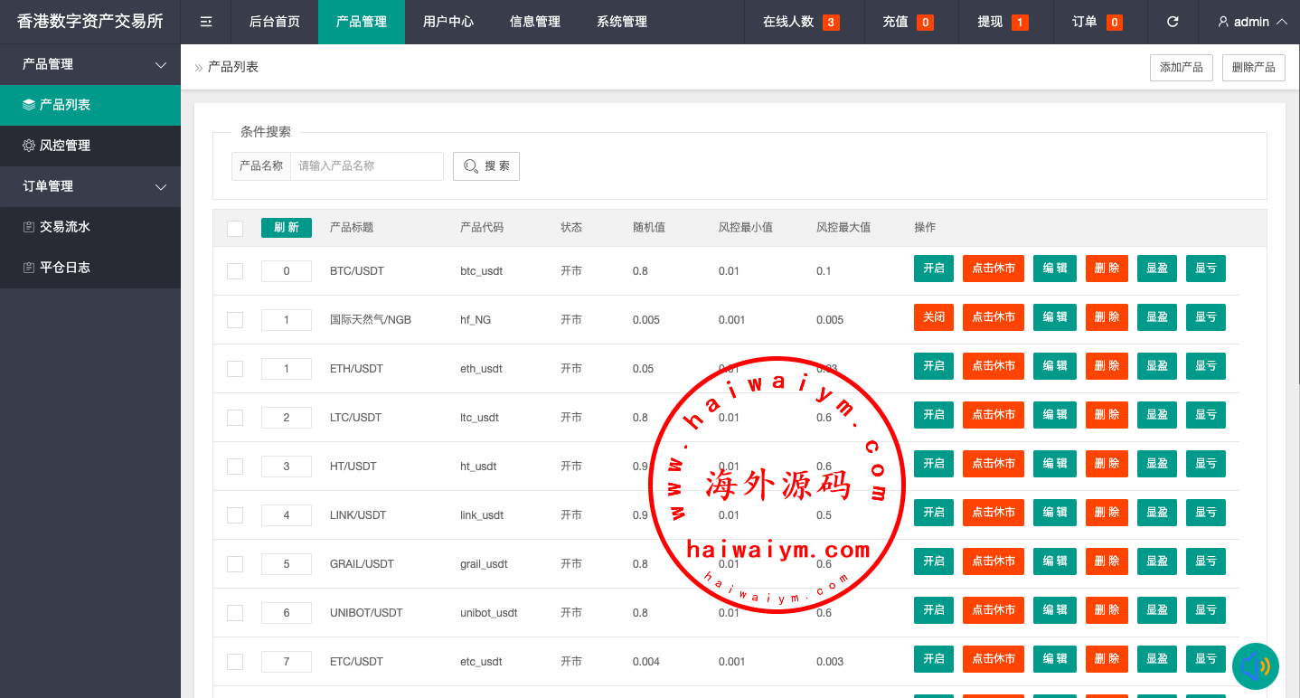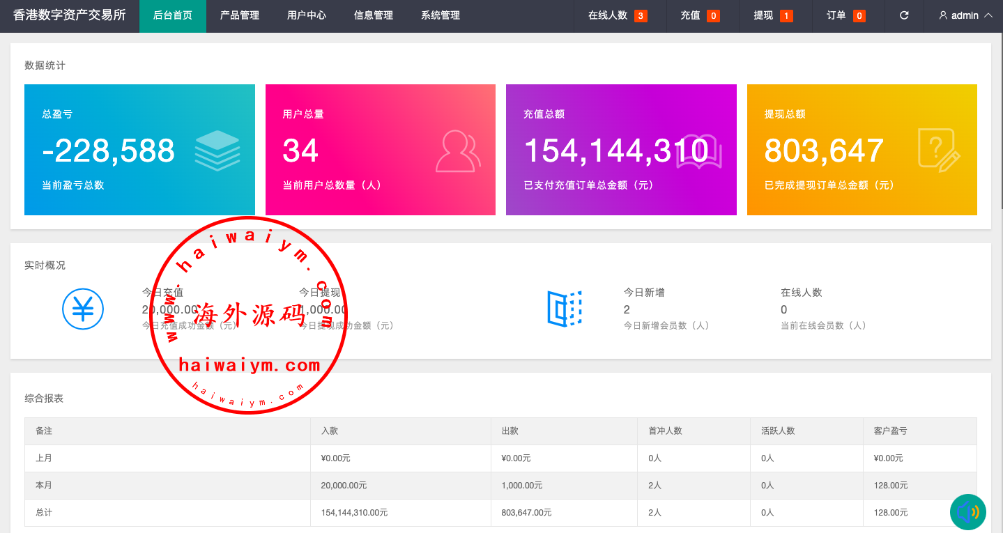 系统完美运行,框架非以前的至尊框架,前端k线正常,产品名称后台可任意修改