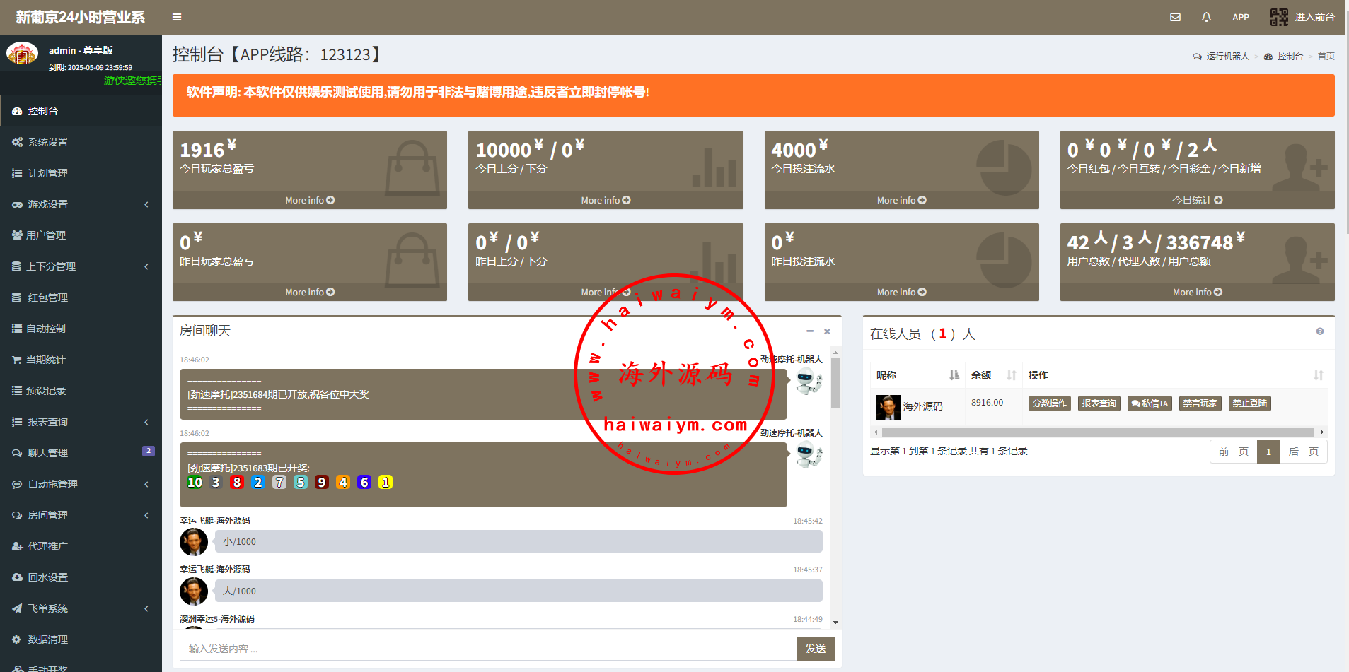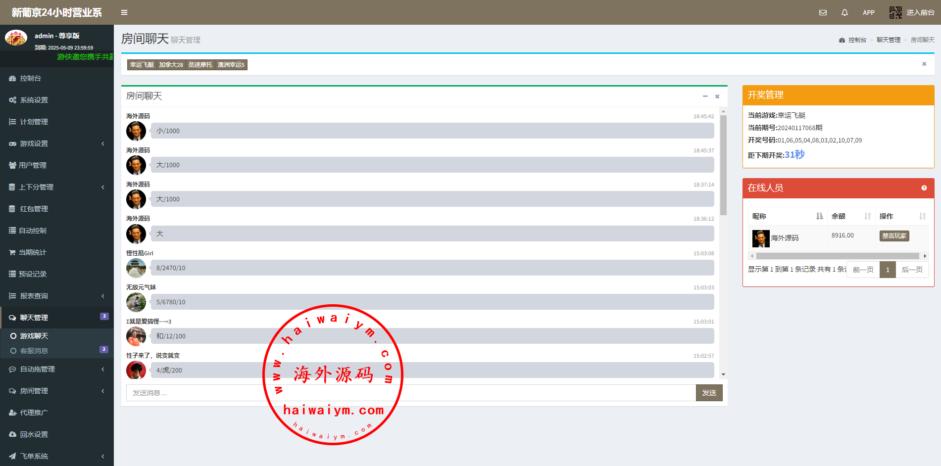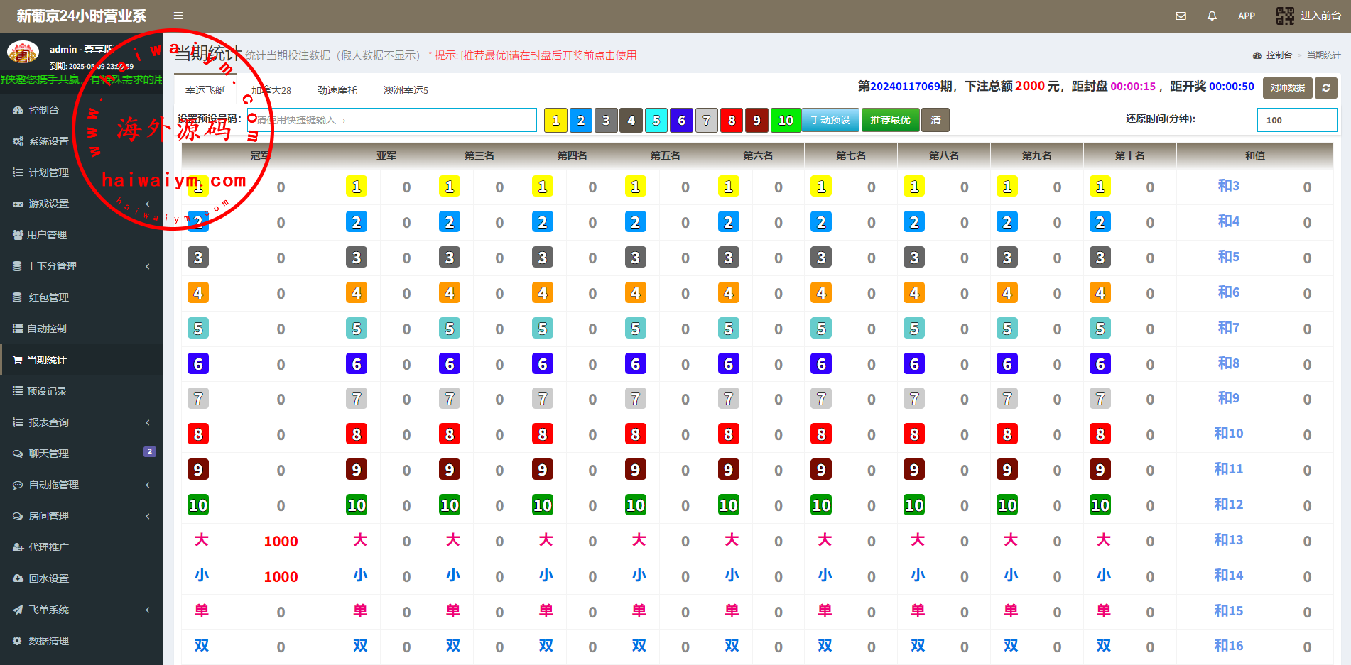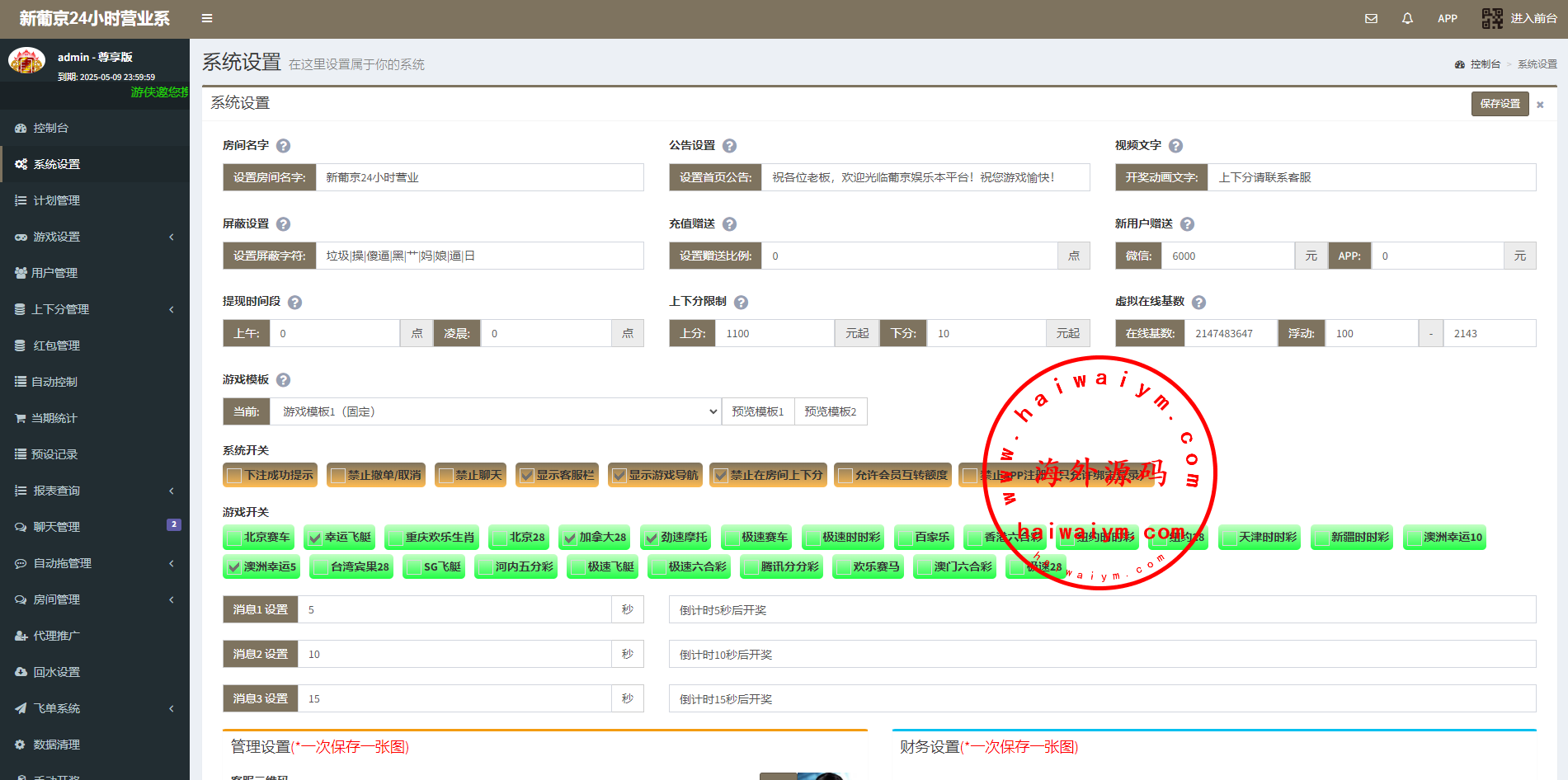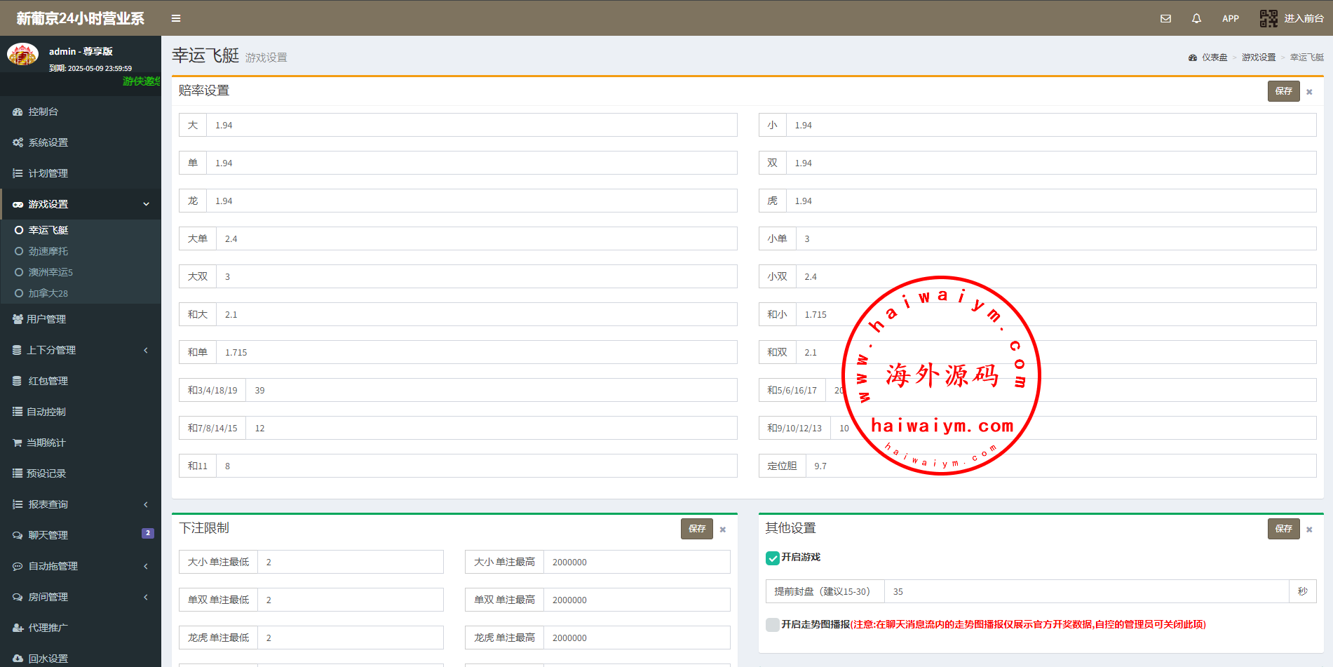 系统二开的功能比较多,可无限开房,智能控制,开奖预设,手动开奖,对接第三方付费采集,具体看图
