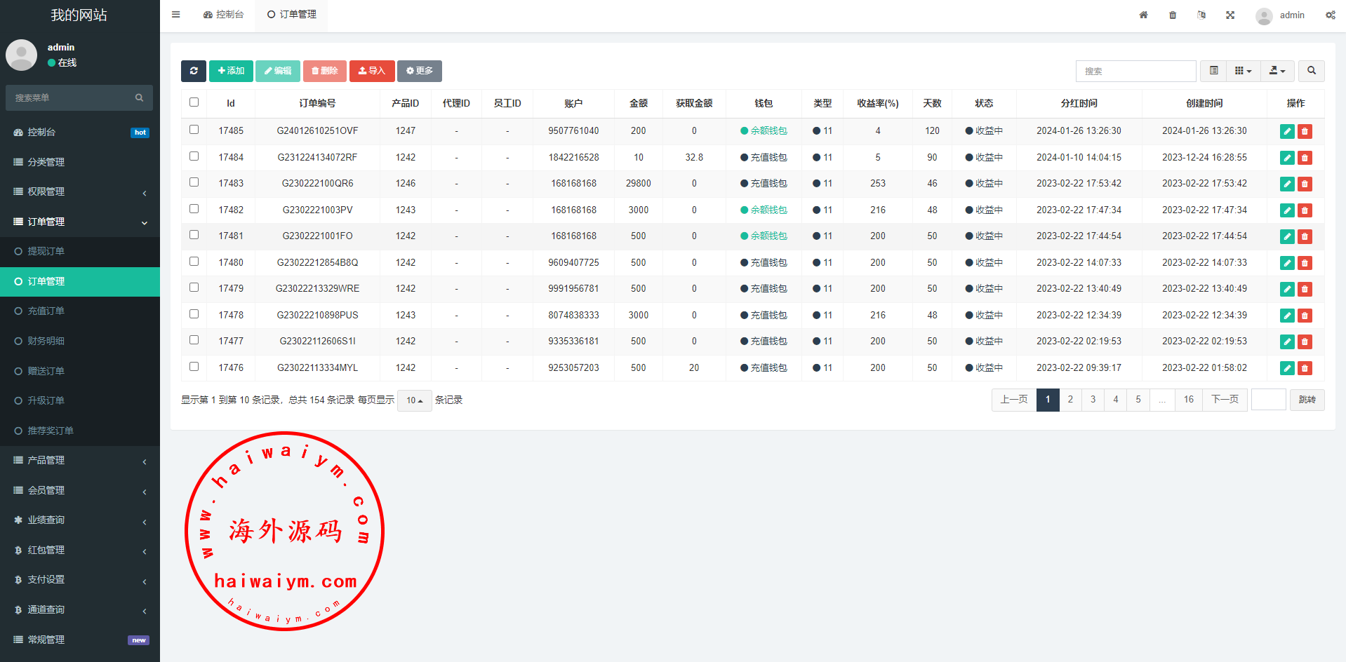 新版海外投资理财系统,FastAdmin框架开发,前端单英文可二开其他语言