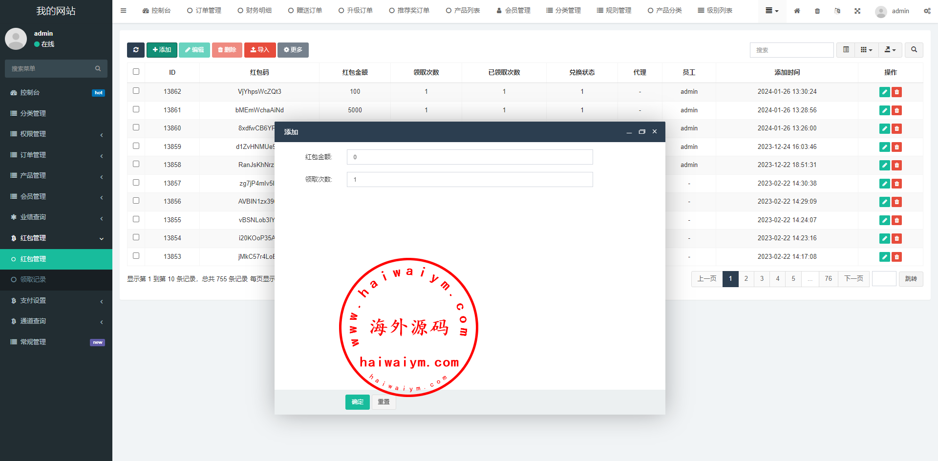 带红包赠送功能,系统功能满足基本需求,前端产品可以随意更改