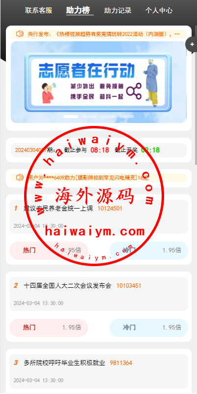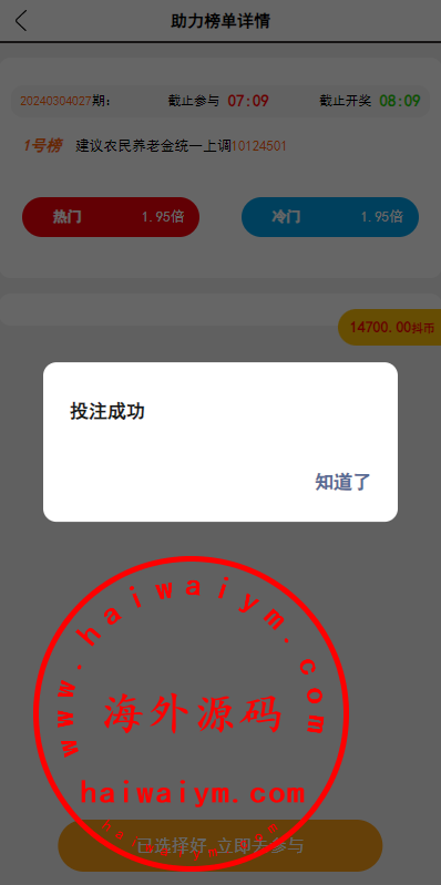 运营版抖音热门竞猜系统/竞猜下注/开奖预设/热门数据竞猜