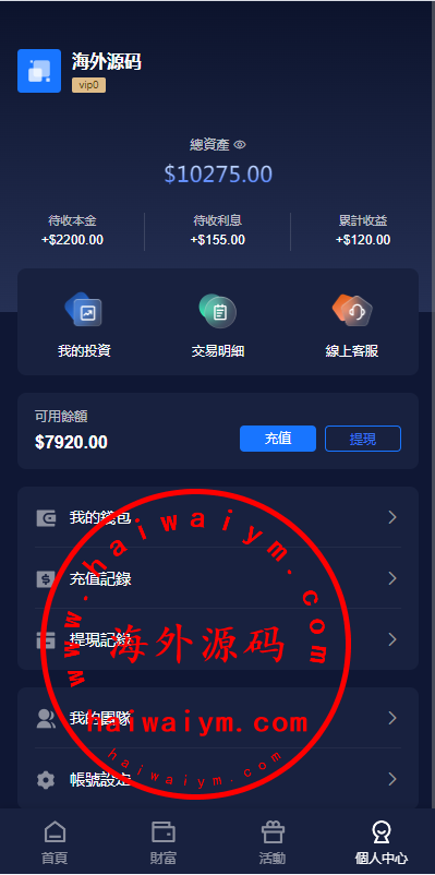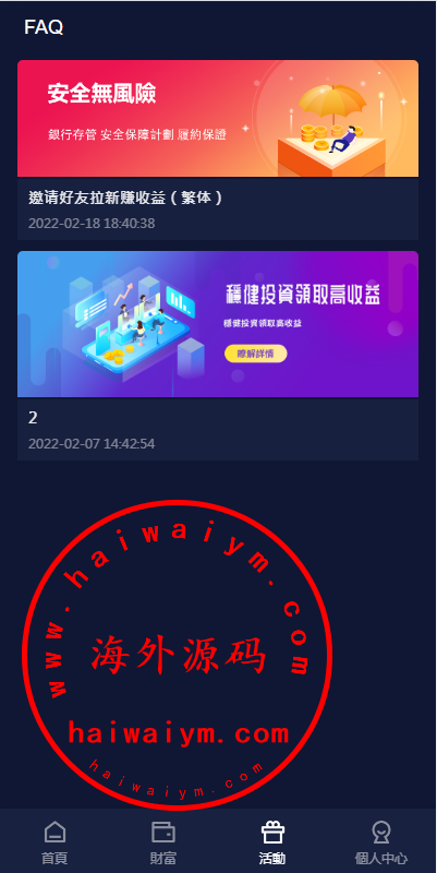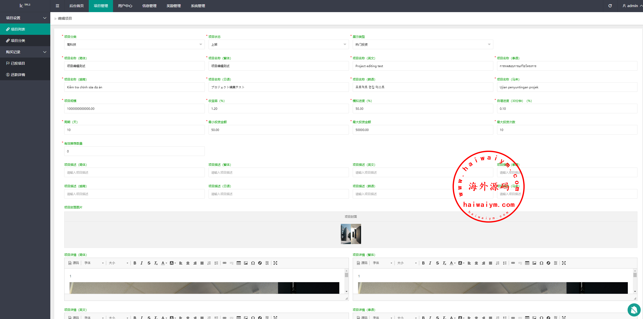 新版UI海外投资理财系统/多语言投资源码/投资众筹系统