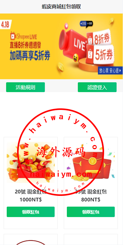 虾皮商城红包钓鱼系统/盗号line账号/前端uniapp
