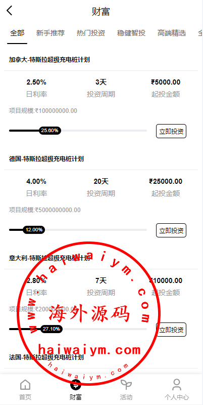 新版海外特斯拉投资系统/多语言投资理财/前端vue