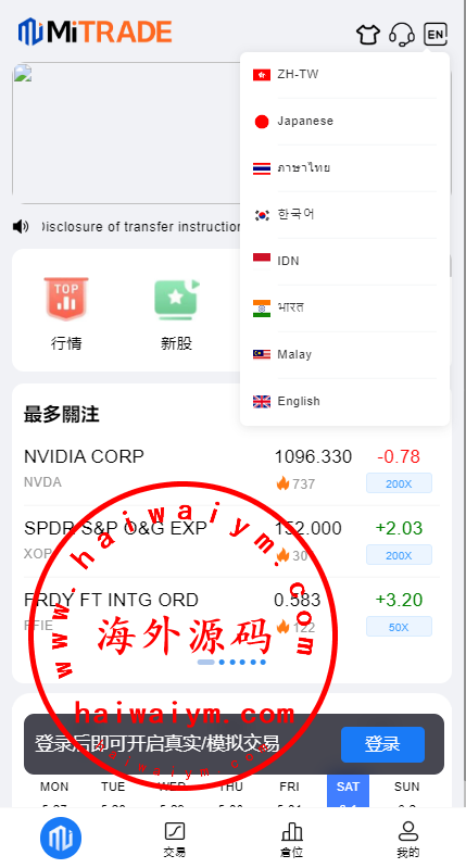 海外股票系统/多语言股票/大宗交易/新股认购/产品理财