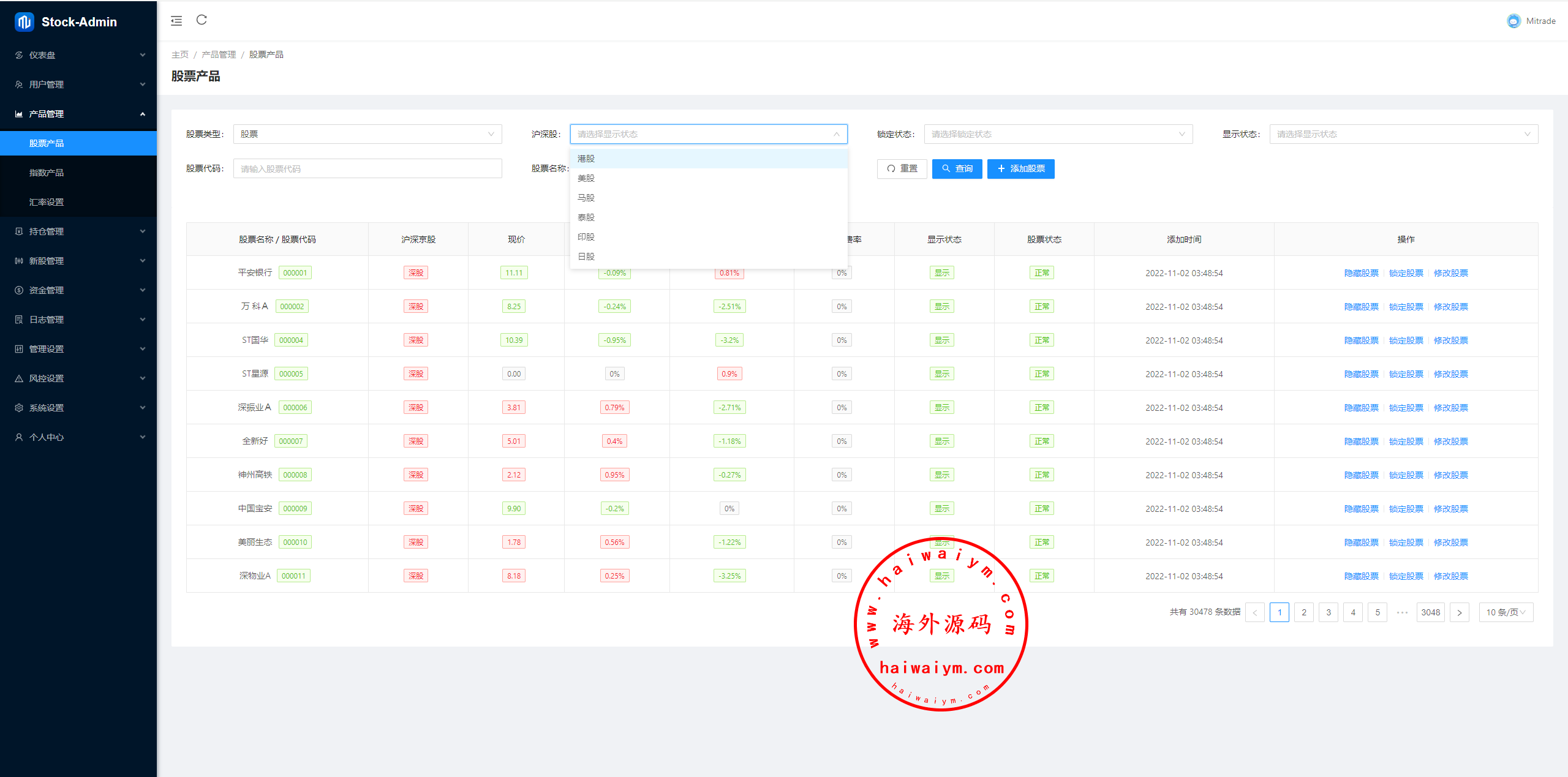 JAVA综合盘全系股票系统,前端(VUE)包含:前台手端、总后台、代理后台,服务端java全开源带源码自带股票:美股、港股、马来股、泰股、印度股、日股