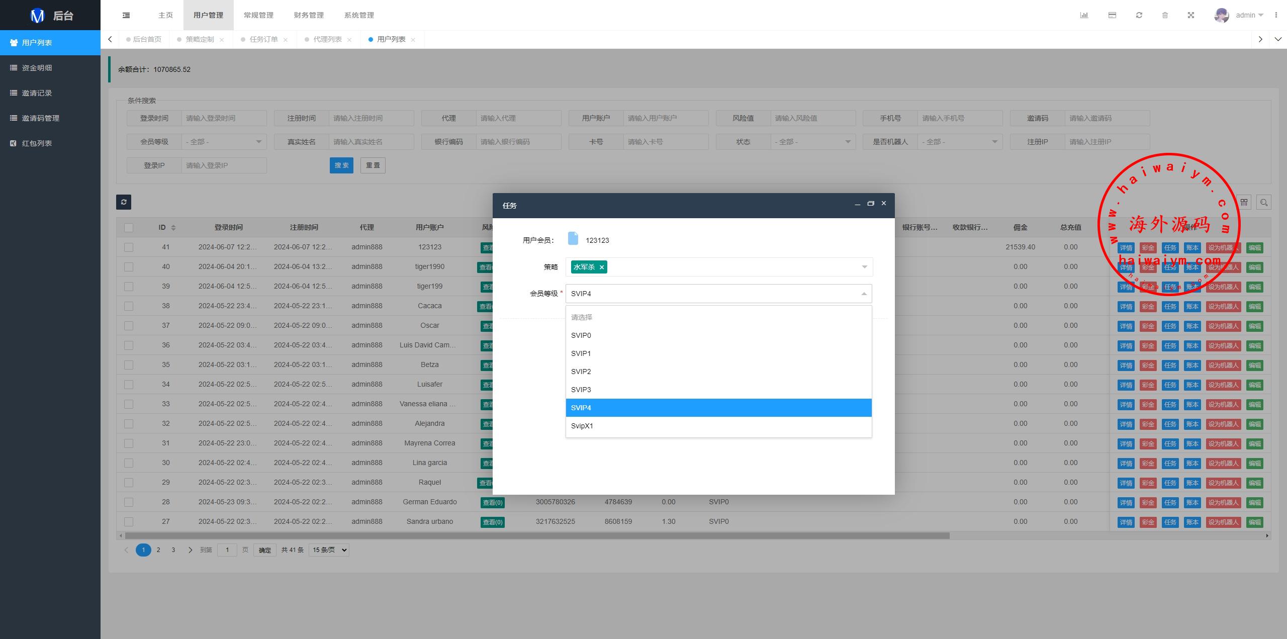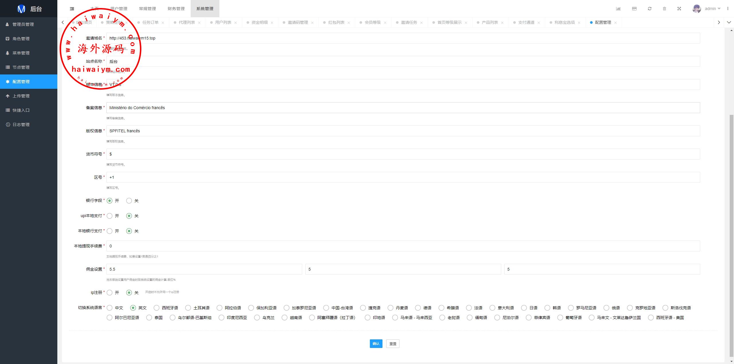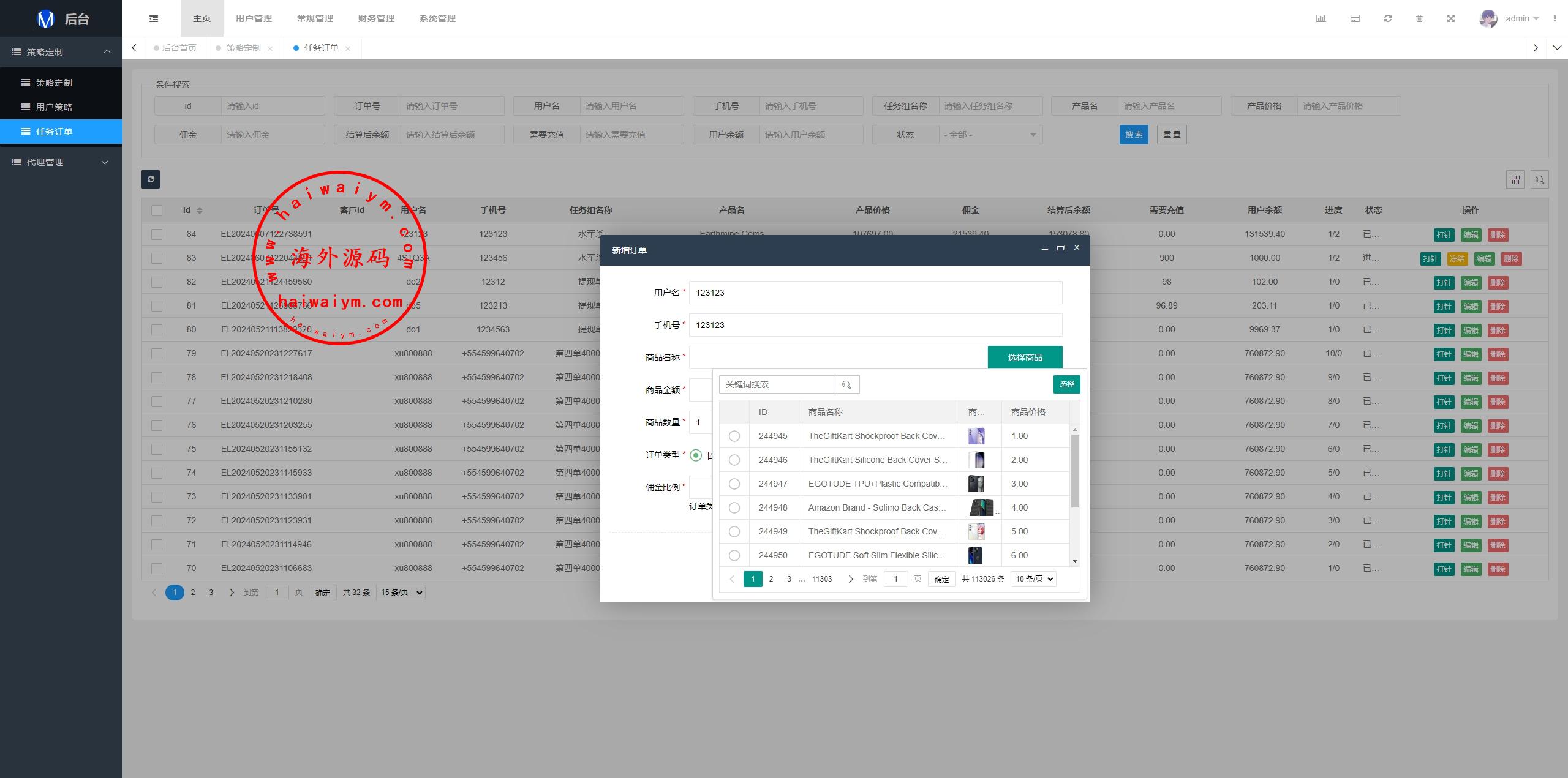 系统支持策略配置,后台共享代理后台独立,系统基本符合市场需求,单独的代理后台等功能