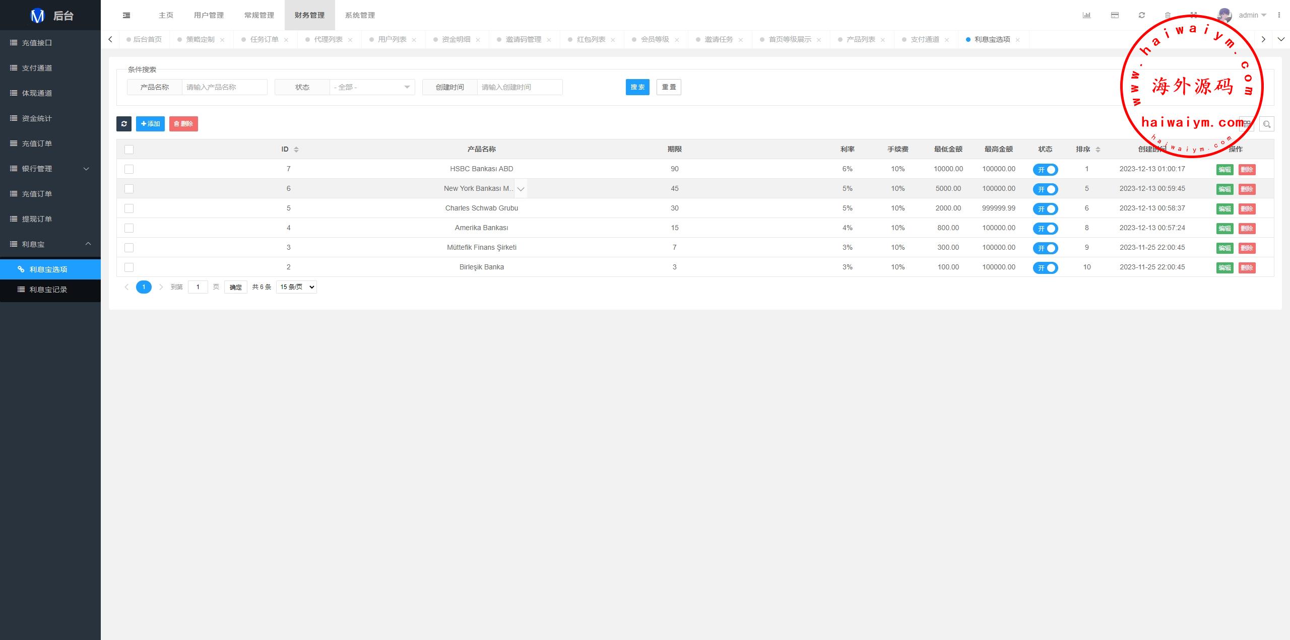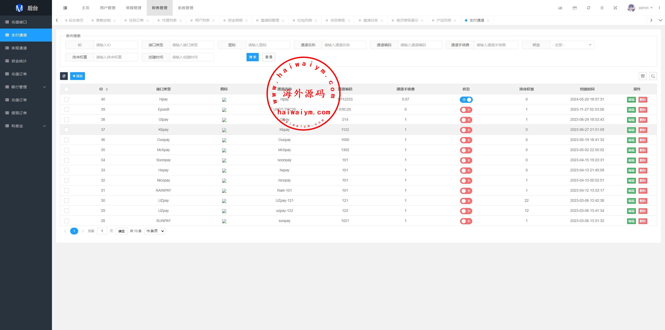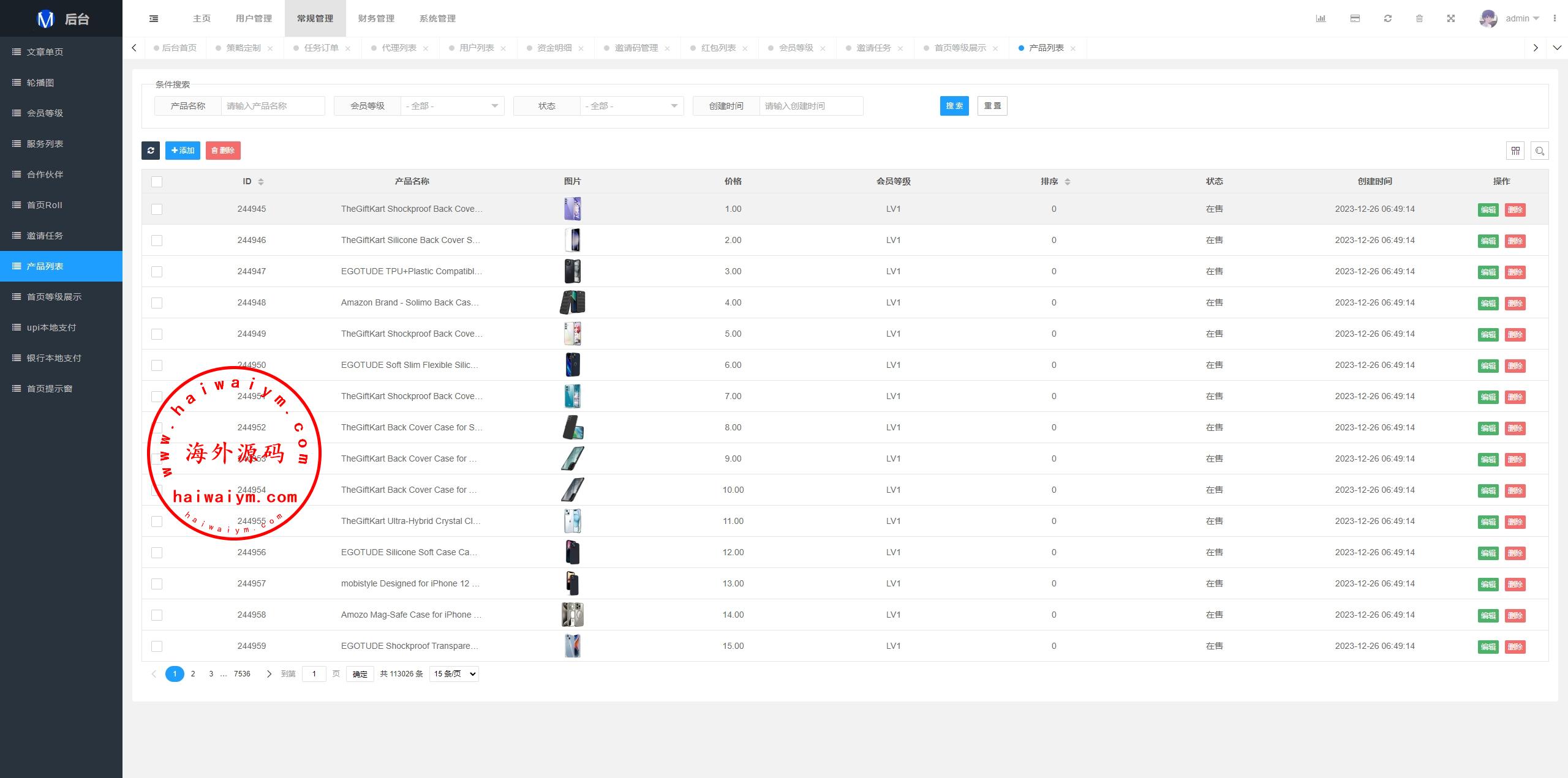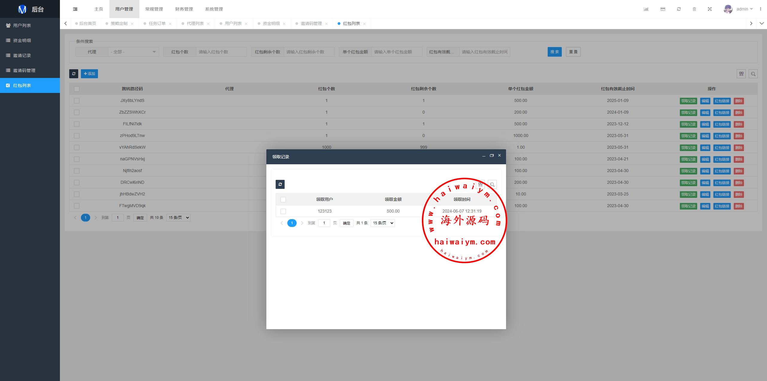 系统支持策略配置,后台共享代理后台独立,系统基本符合市场需求,单独的代理后台等功能