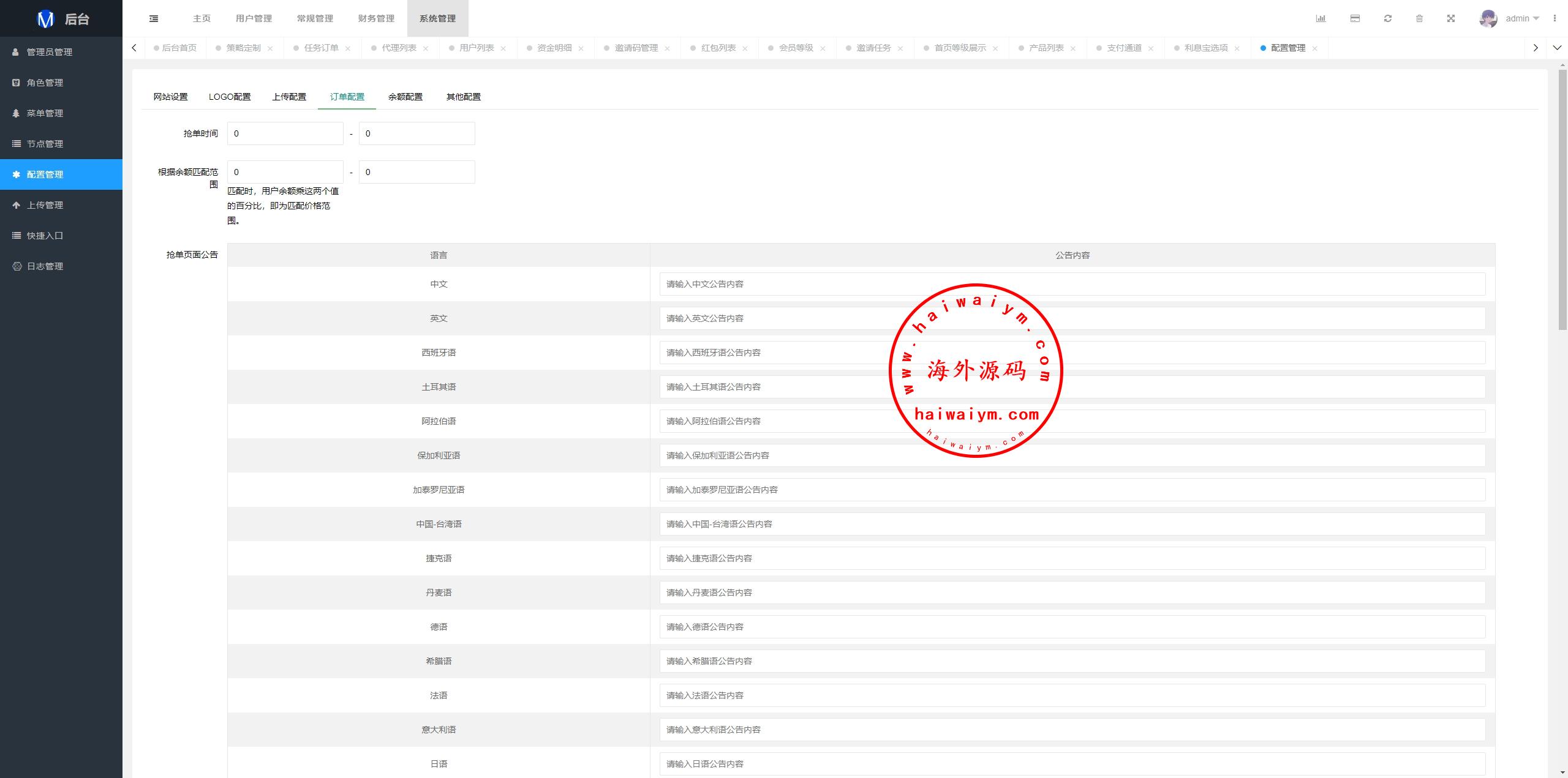 运营版前端uniapp海外抢单刷单系统/策略组/打针/风险值/36国语言