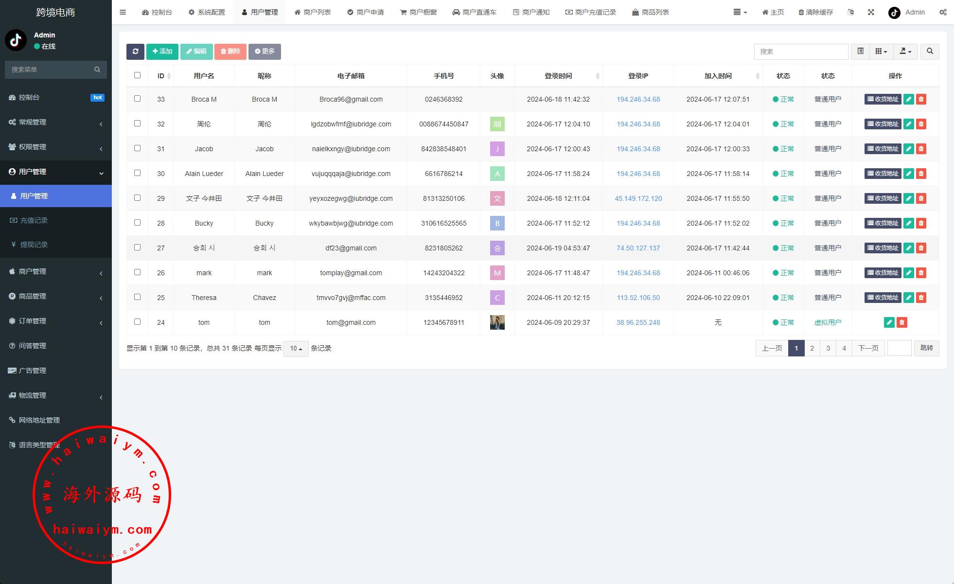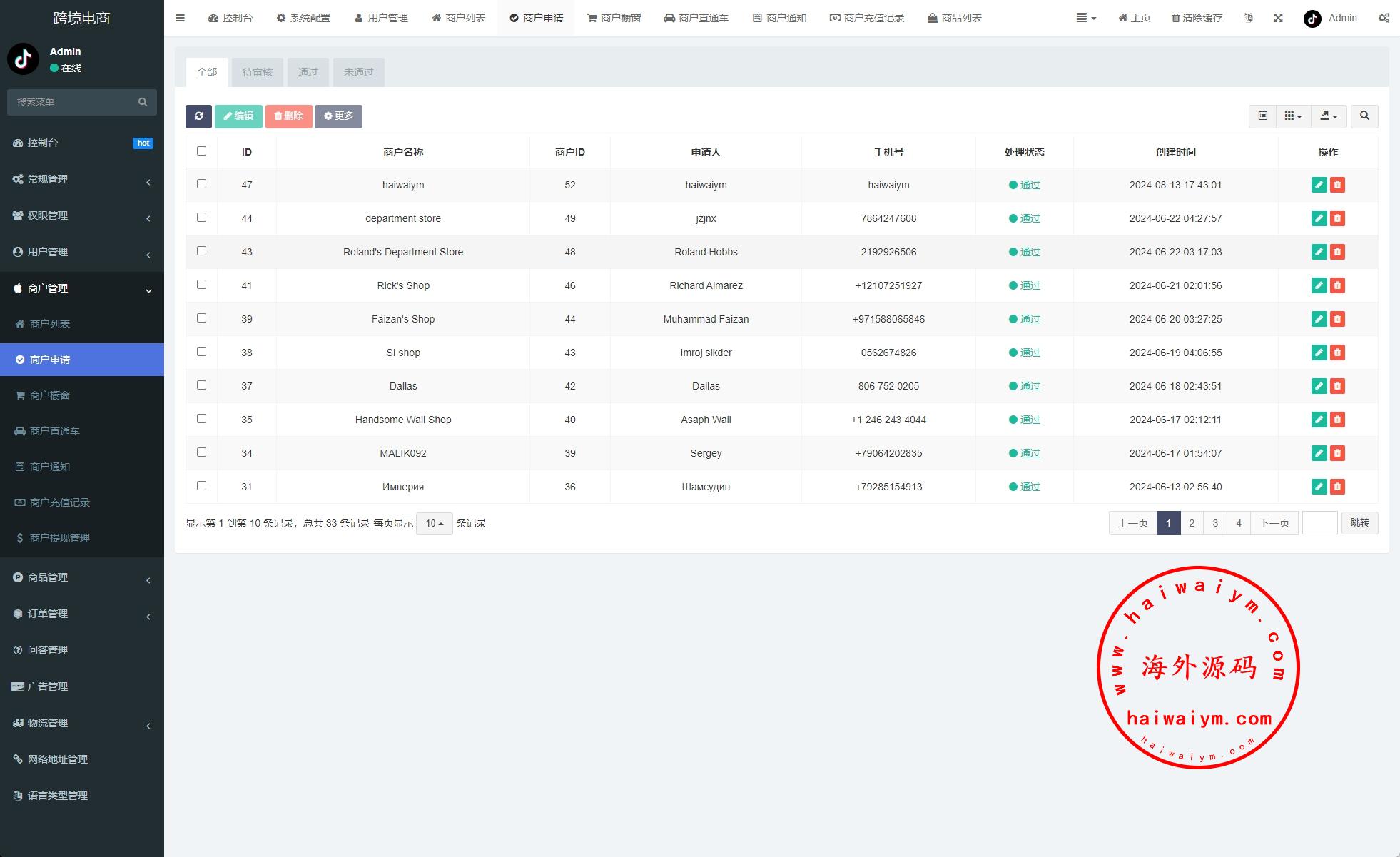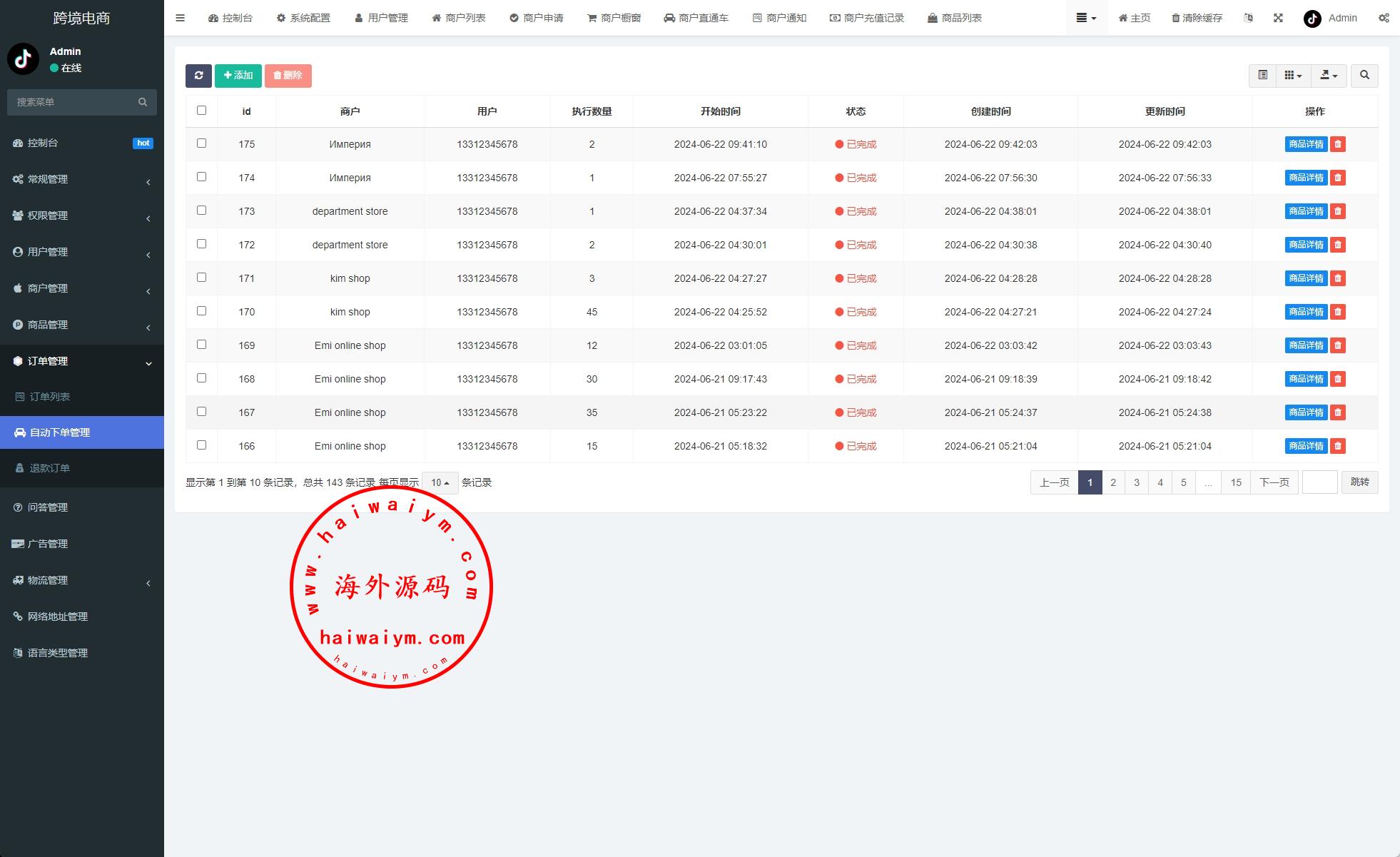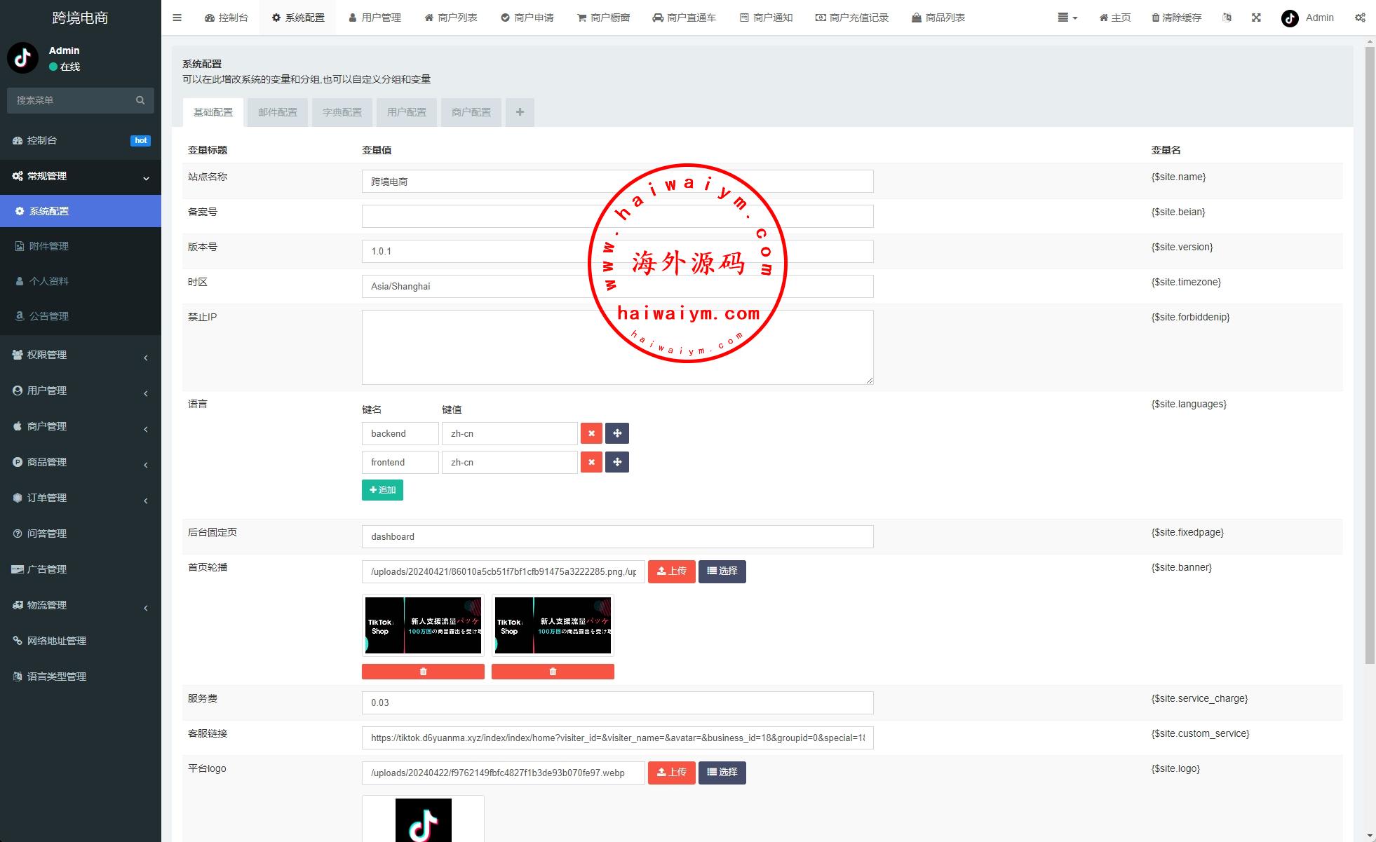 PHP版tiktok商城系统,商户端vue,手机端vue后端是fastadmin框架,客服端thinkphp
