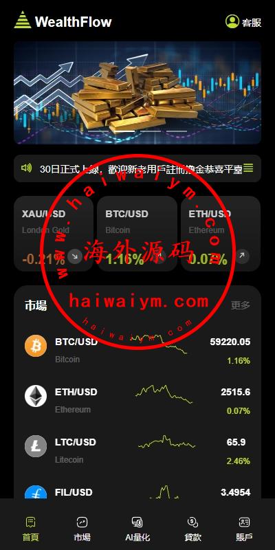 多语言综合交易所系统/外汇/期货虚拟币交易/AI量化/贷款
