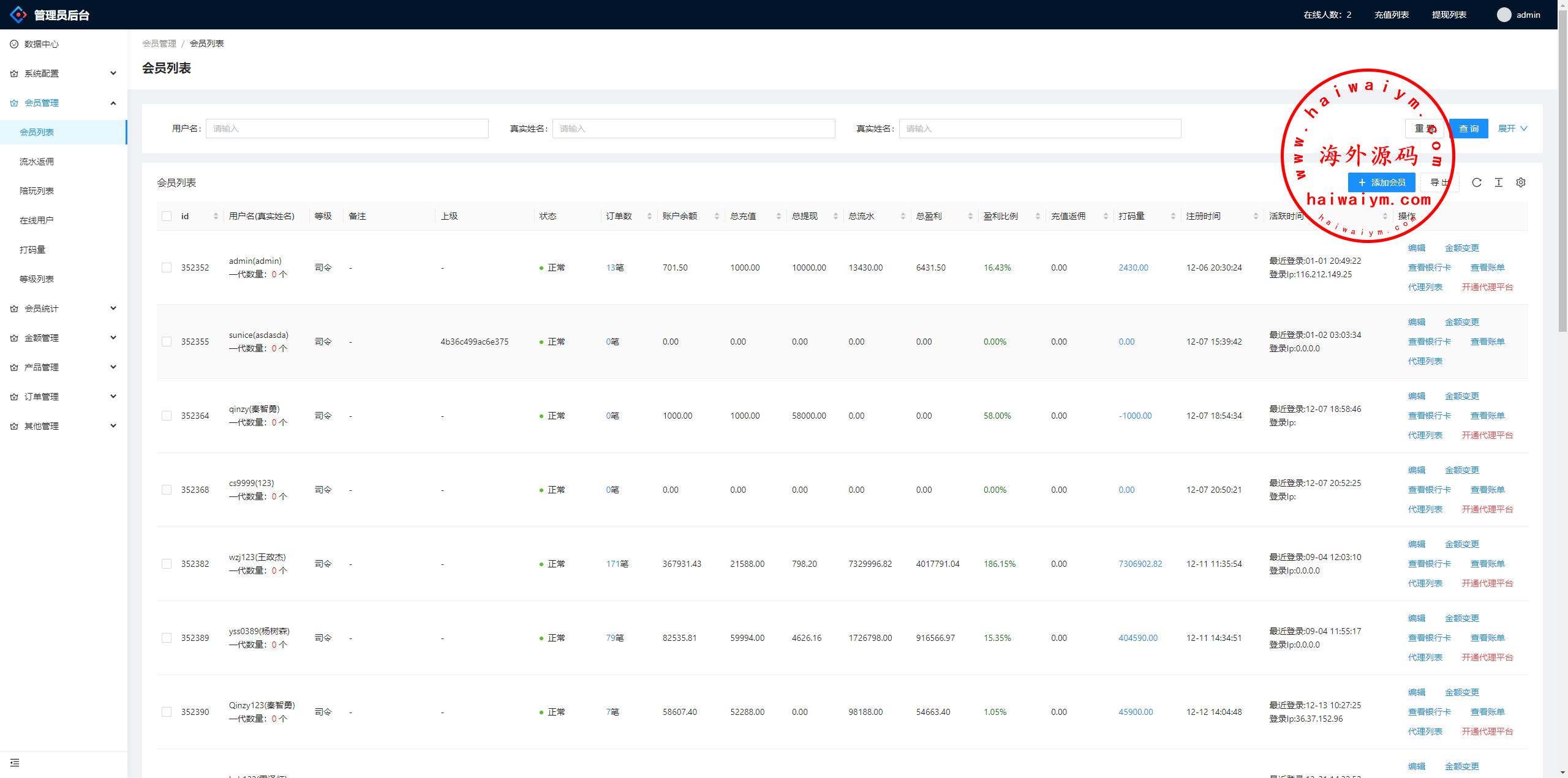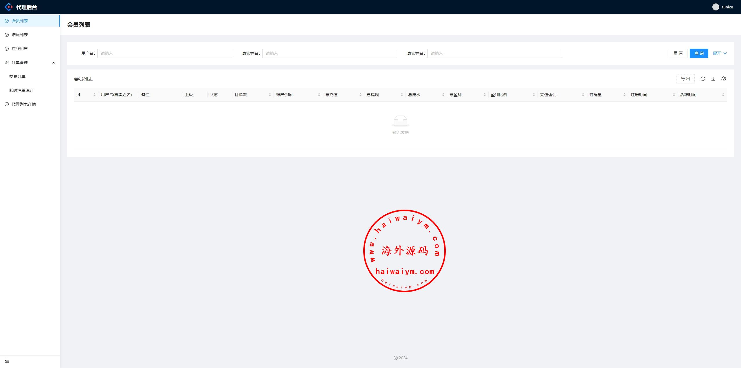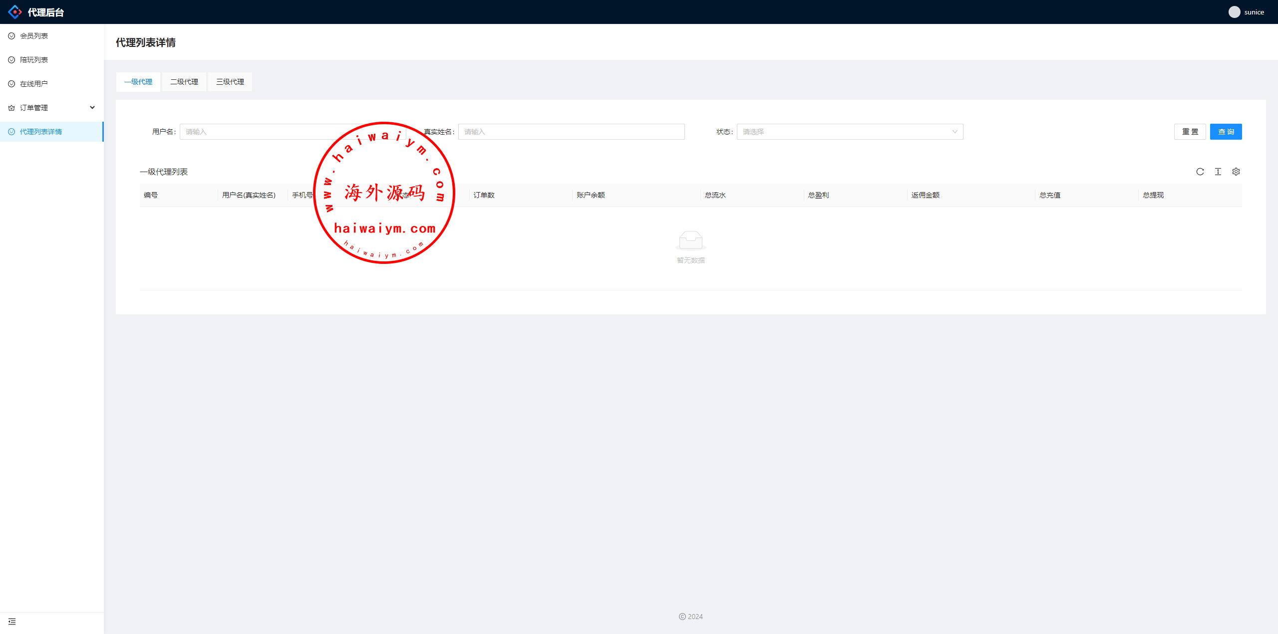 代理功能(独立代理后台,可三级代理,三级返佣)