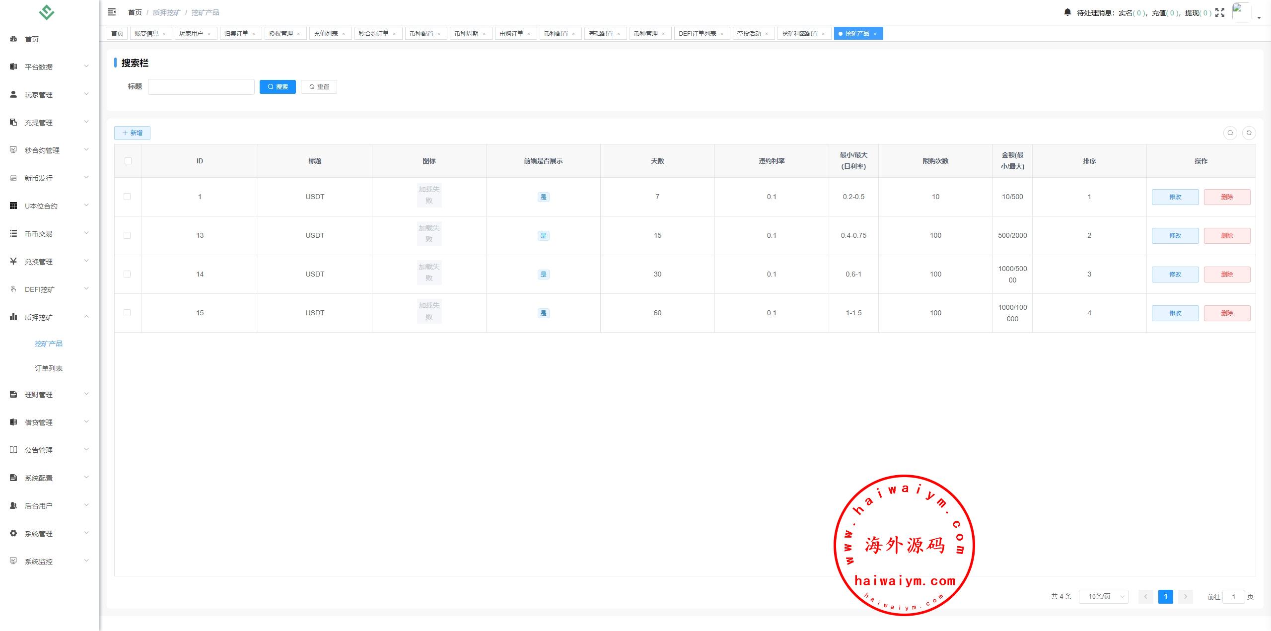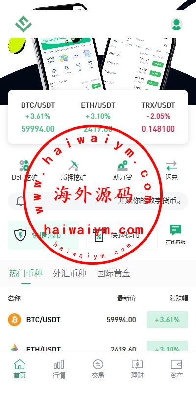 币币、U本位合约、秒合约、质押挖矿、助力贷、理财、代理、Ai智能控盘、推广三级分销等功能